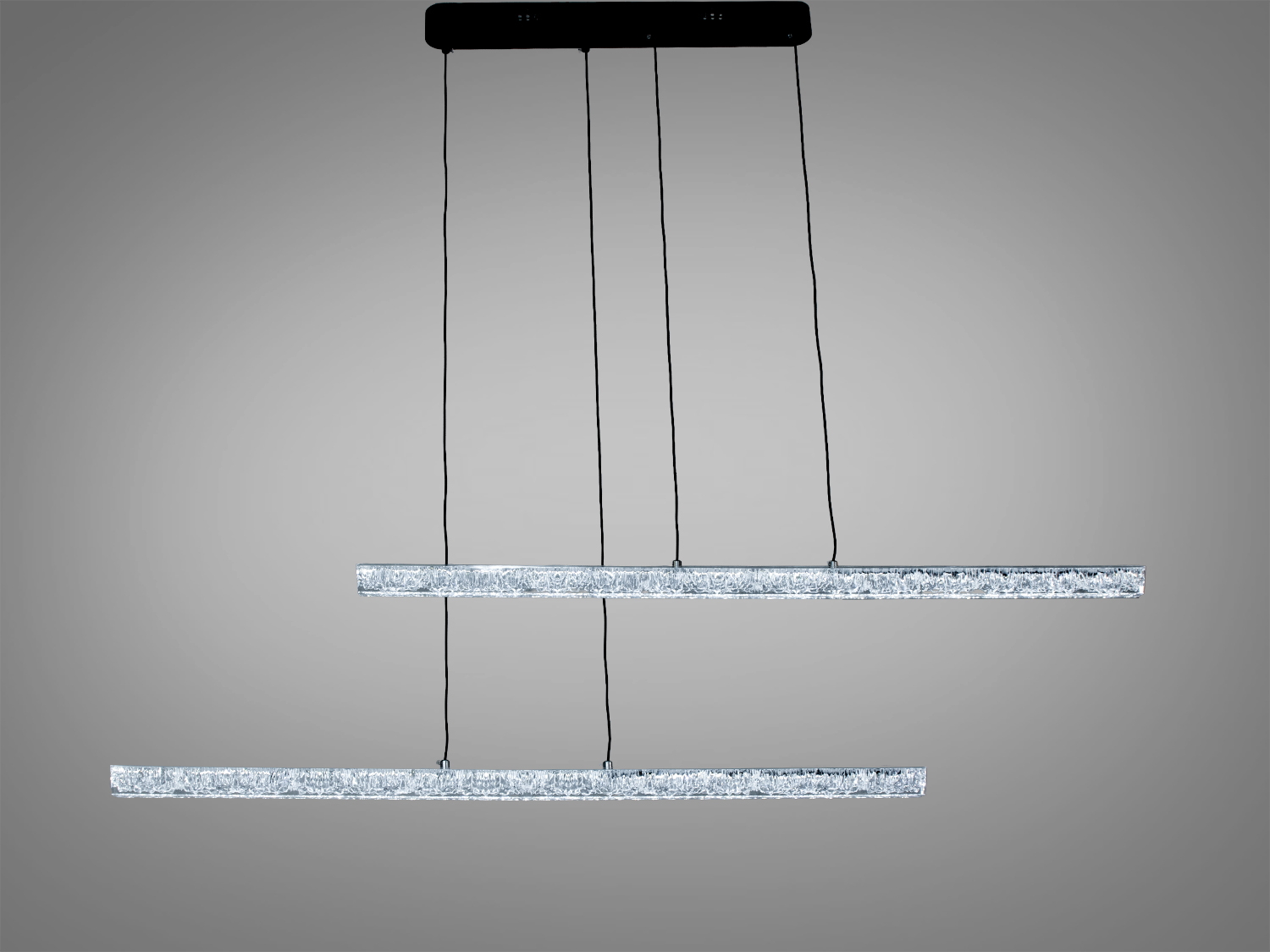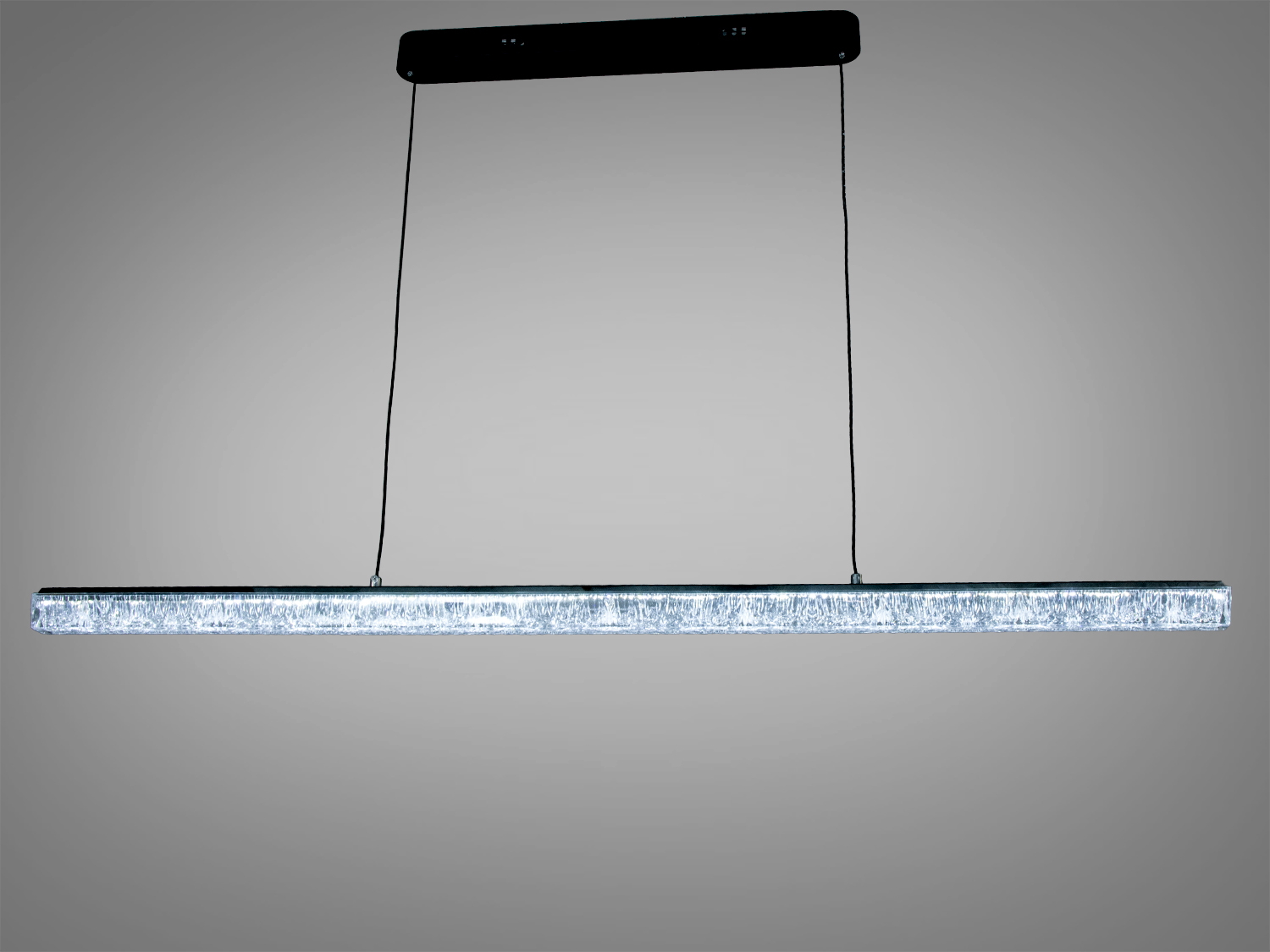 - Підвісний монтаж з двома тросами допомагає візуально вирівняти світильник над столом або барною стійкою.