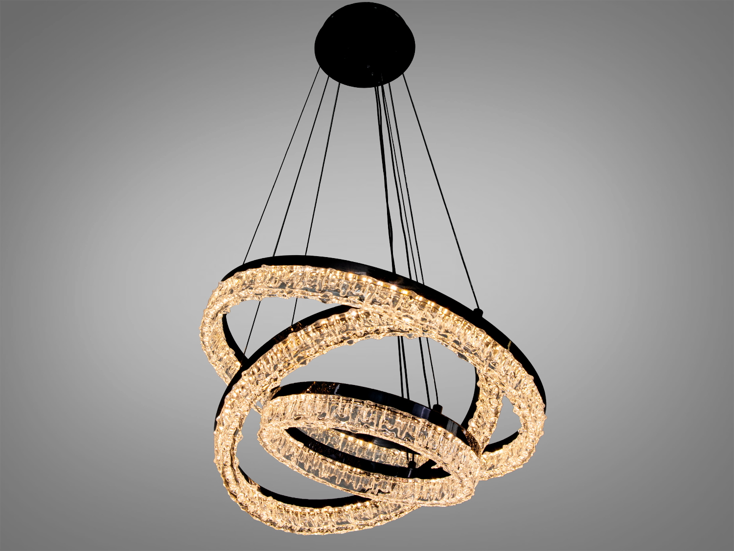- Три кільця з акрилу з прозорою фактурою дають ефект кришталю та рівномірно розсіюють світло без різких тіней.