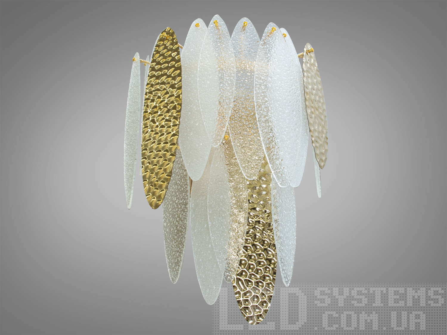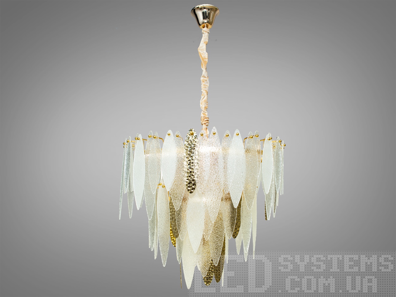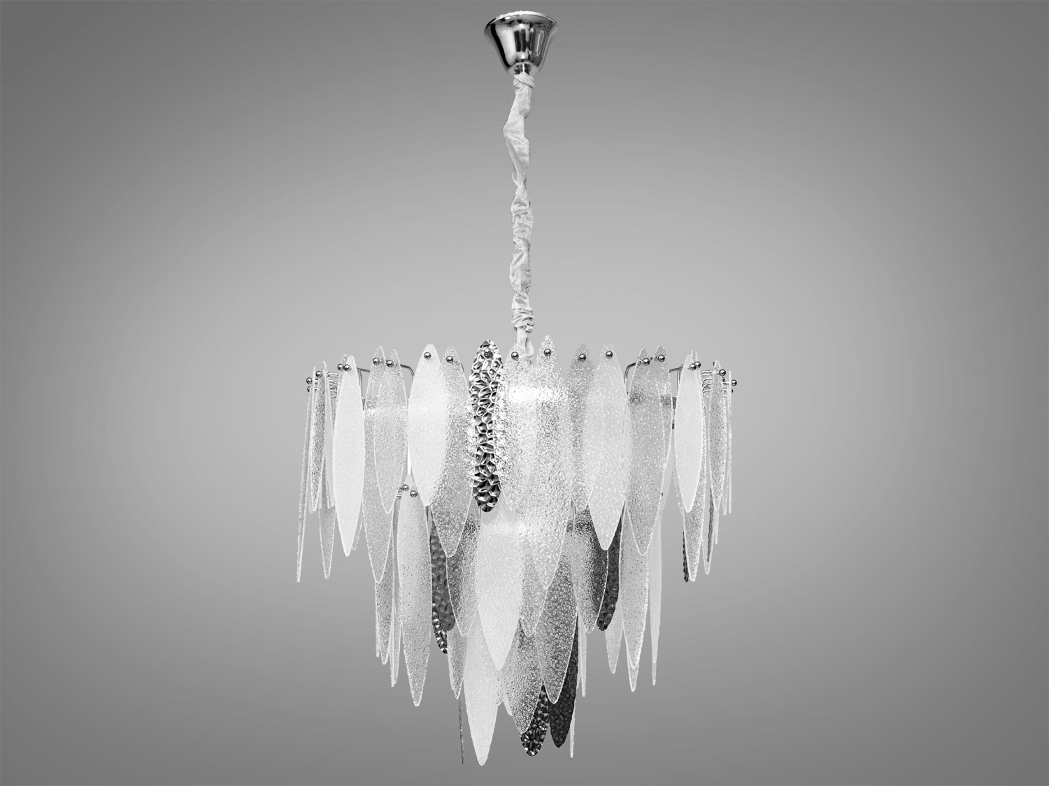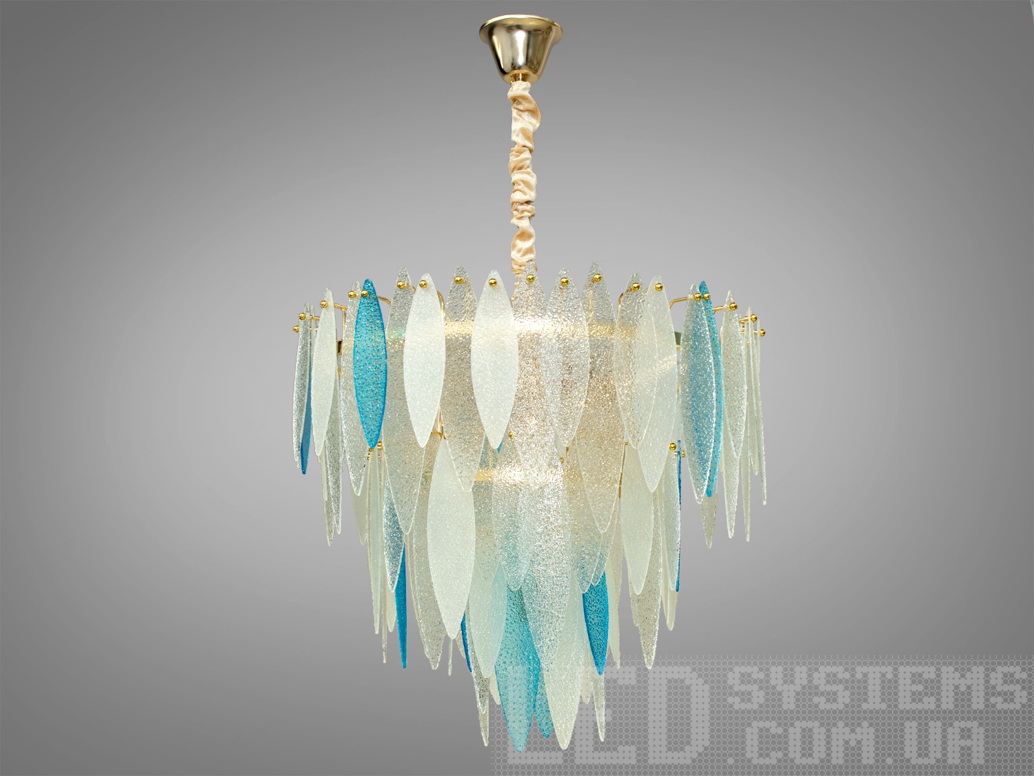 Текстура підвісок нагадує легкий ранковий іній, який відблискує під сонячними променями, або ж свіжий ранковий туман, що м'яко огортає ліс. Така гра світла та текстур робить люстру не лише джерелом освітлення, а й об'єктом мистецтва, котрий здатен внести до будинку атмосферу природної гармонії та спокою.