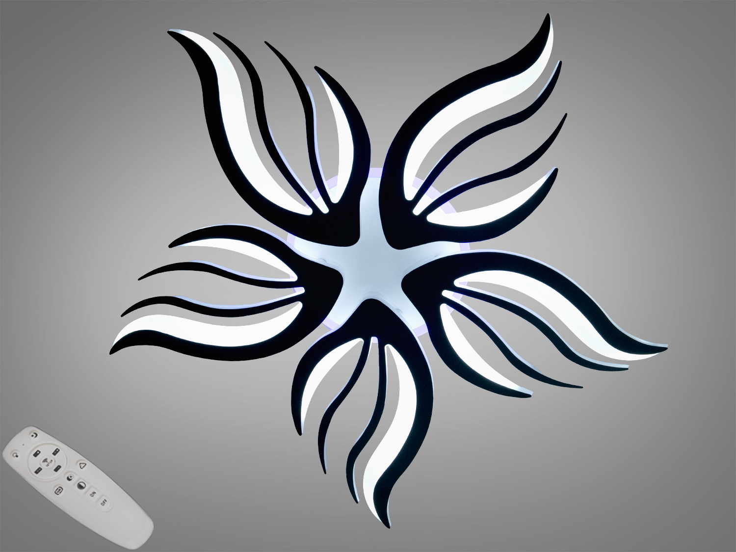 - Хвилясті пелюсткові елементи створюють динамічну композицію без зайвого об′єму, залишаючи стелю візуально легкою.