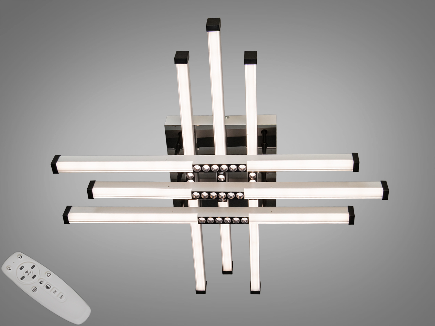- Пульт дистанційного керування дає змогу зручно вмикати/вимикати світильник і керувати режимами.