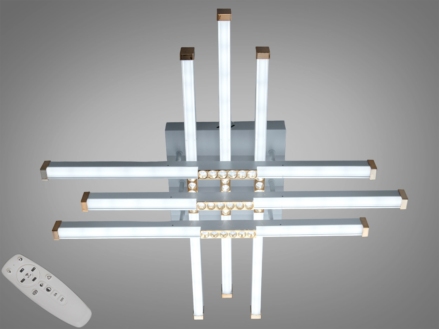 Світлодіодна люстра Diasha з кільцями 50W у матовому хромі — керування пультом і димер