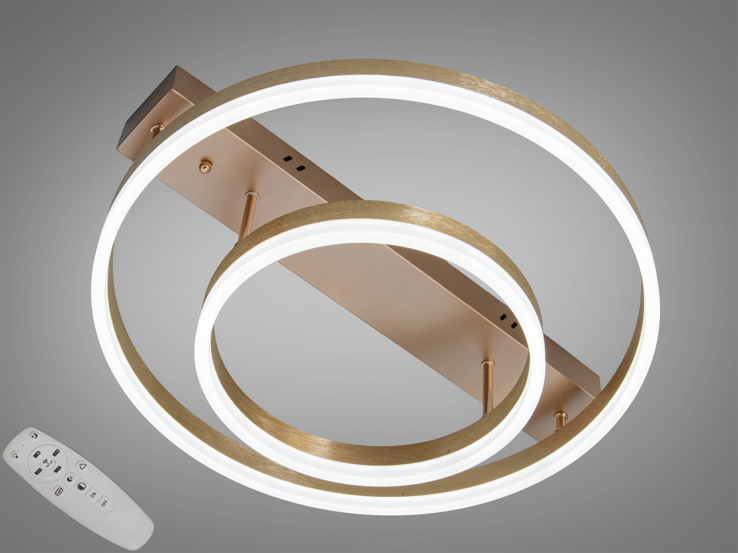 Стельова LED-люстра з двома кільцями від Diasha поєднує виразний сучасний дизайн і практичні можливості щоденного освітлення. Два світлові модулі формують охайні світлові контури, а потужність 50 W зазвичай достатня для кімнати близько 9 м² (спальня, дитяча, кабінет або невелика вітальня). Компактний накладний монтаж допомагає встановити світильник навіть у приміщеннях з невисокими стелями.