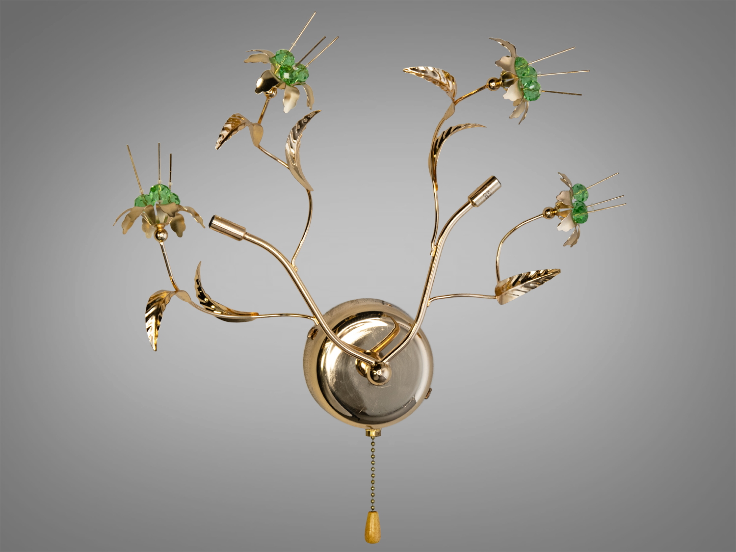 Ця модель бра оживляє стіни, перетворюючи їх у полотно для ніжного букету з квітів, які здаються наче вирощені зі світла. Золотисті стебла граційно вигинаються, тримаючи на собі блискучі кристали, що імітують квіткові бутони та пелюстки. Дизайн з елементами кристалів додає світильнику привабливого блиску та ефекту розсіювання світла, яке створює неповторну атмосферу у просторі.
