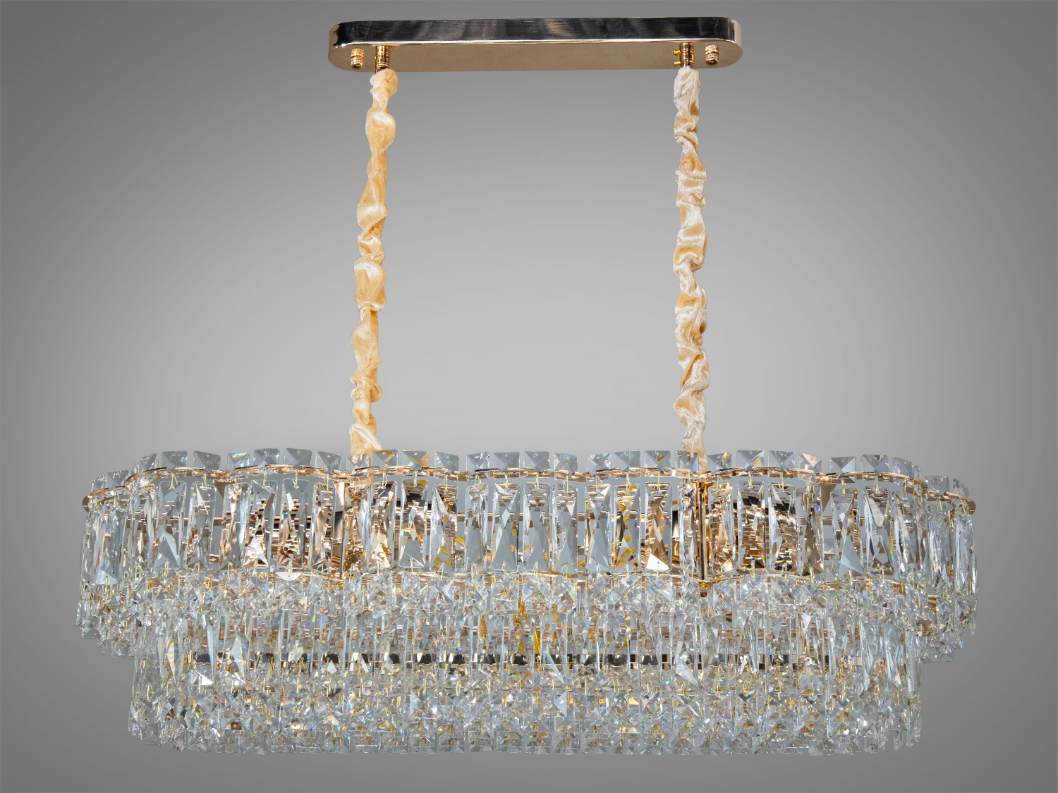 Модель 310-800X300HR — підвісна кришталева люстра овальної форми, що створює виразний світловий контур над обіднім столом або в зоні відпочинку. Довжина близько 78 см, ширина 28 см, висота підвісу близько 75 см. Композиція з гранованих кришталів у поєднанні з хромованим металом формує щільний світловий потік і м’які відблиски, які підкреслюють фактуру інтер’єру без зайвої яскравості.