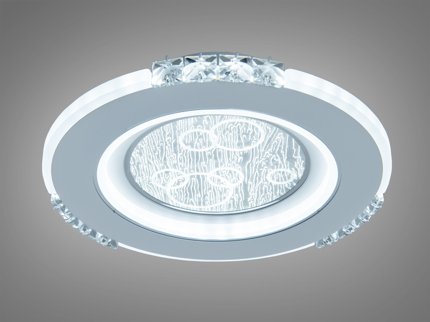 Світильник має плаский корпус білого кольору з охайним контуром. Акриловий плафон забезпечує м’яке, однорідне світіння без різких переходів. Така конструкція допомагає візуально «полегшити» стелю, а ненав’язливий дизайн доречно виглядає у мінімалістичних та сучасних просторах. По краю дифузора формується приємне підсвічування, що візуально додає об’єму й м’якості світловій плямі.