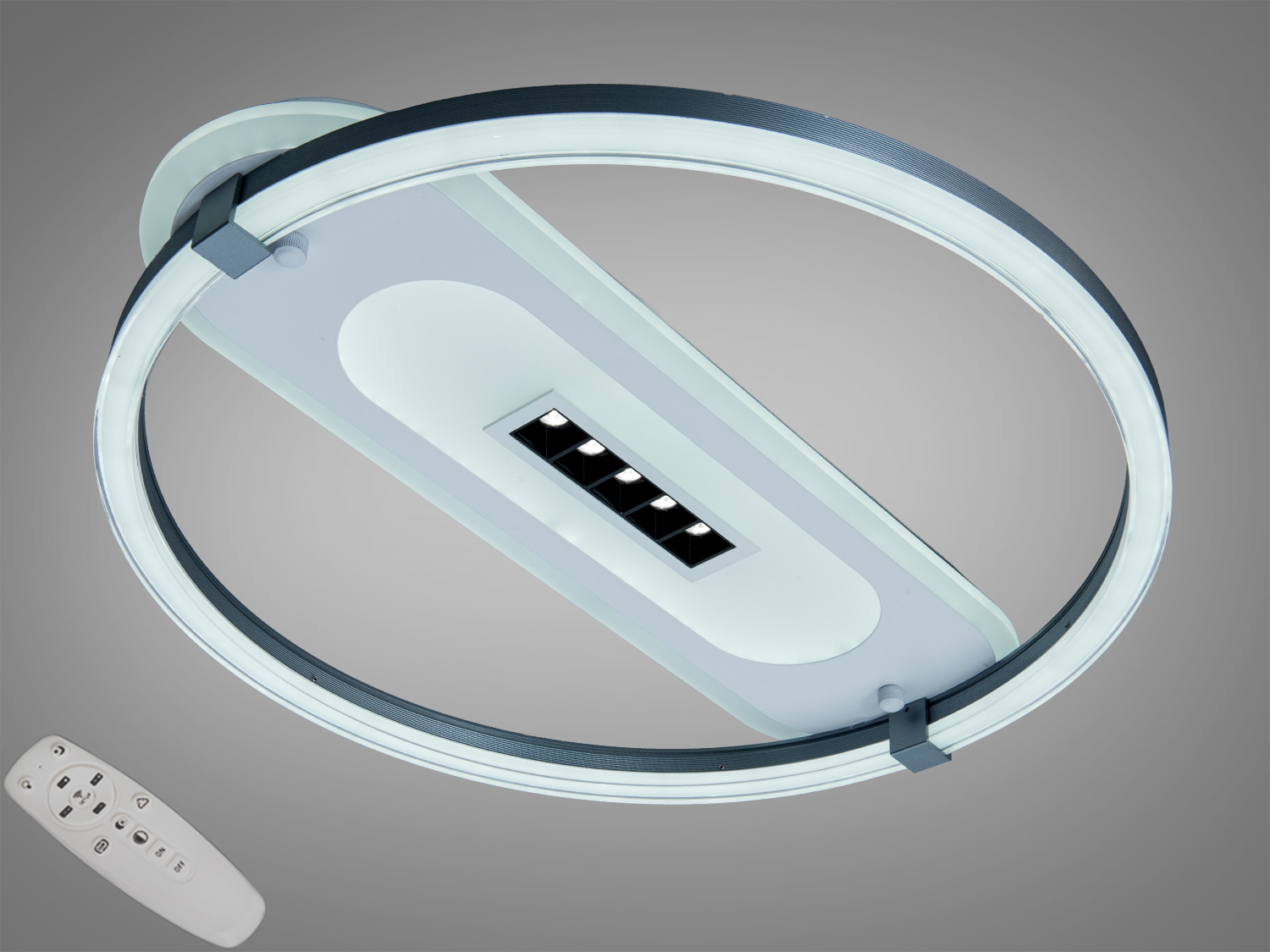 Світлодіодна люстра 2 кільця сіра 88Вт пульт 15м²