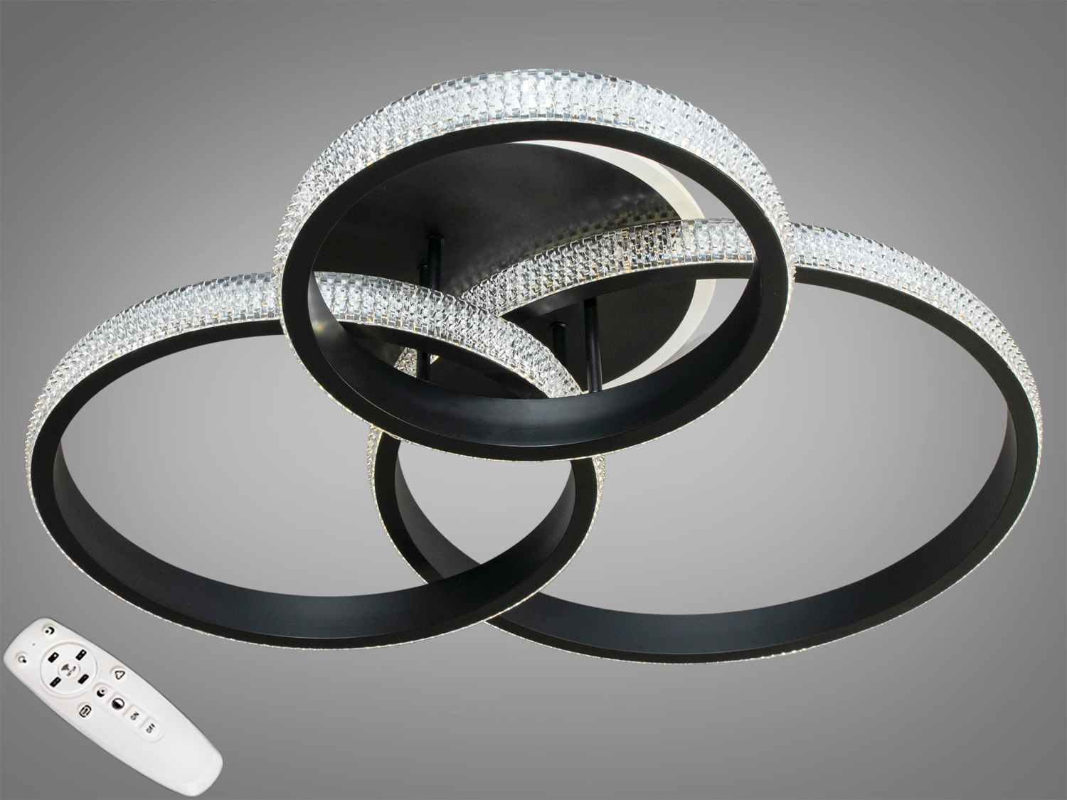 Люстра оснащена вбудованим вентилятором зі змінною швидкістю обертання та системою дистанційного керування. Керування освітленням і вентилятором здійснюється за допомогою пульта дистанційного керування та приймача, встановленого всередині корпусу люстри.