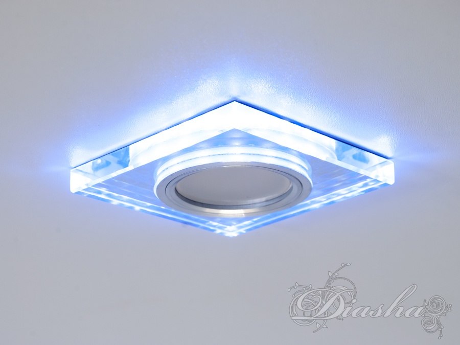Периметр точкового врізного світильника обрамлений вбудованим LED підсвічуванням потужністю 3 Вт, що створює м′який світловий ореол навколо світильника. Такий ефект додає вишуканості та затишку приміщенню, створюючи неповторну атмосферу. Встановлення точкових світильників по периметру стелі візуально підвищує її та робить простір кімнати більшим і відкритим.
