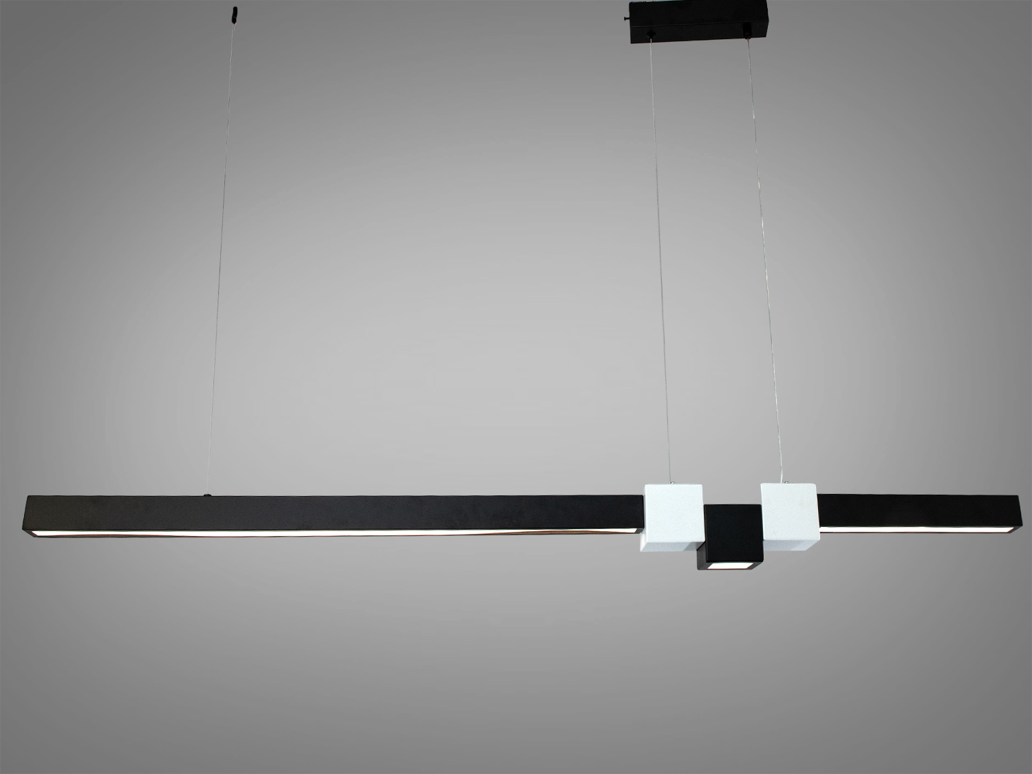Модель у білому кольорі з чорними елементами підкреслює чисті лінії простору та допомагає організувати освітлення зонально. Для більших приміщень можна передбачити кілька таких підвісів у ряд або комбінувати з накладними/вбудованими джерелами світла. Також можливий вибір у чорному кольорі цієї ж серії (за наявності).