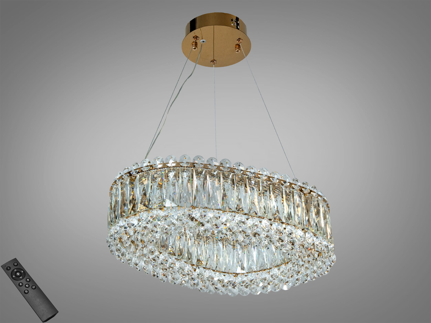 Світлодіодна кришталева підвісна люстра 68 Вт — золото, овальна форма з пультом