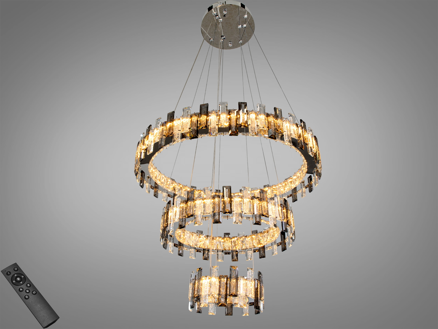 Світлодіодна кришталева підвісна люстра 54 Вт з пультом у хромі