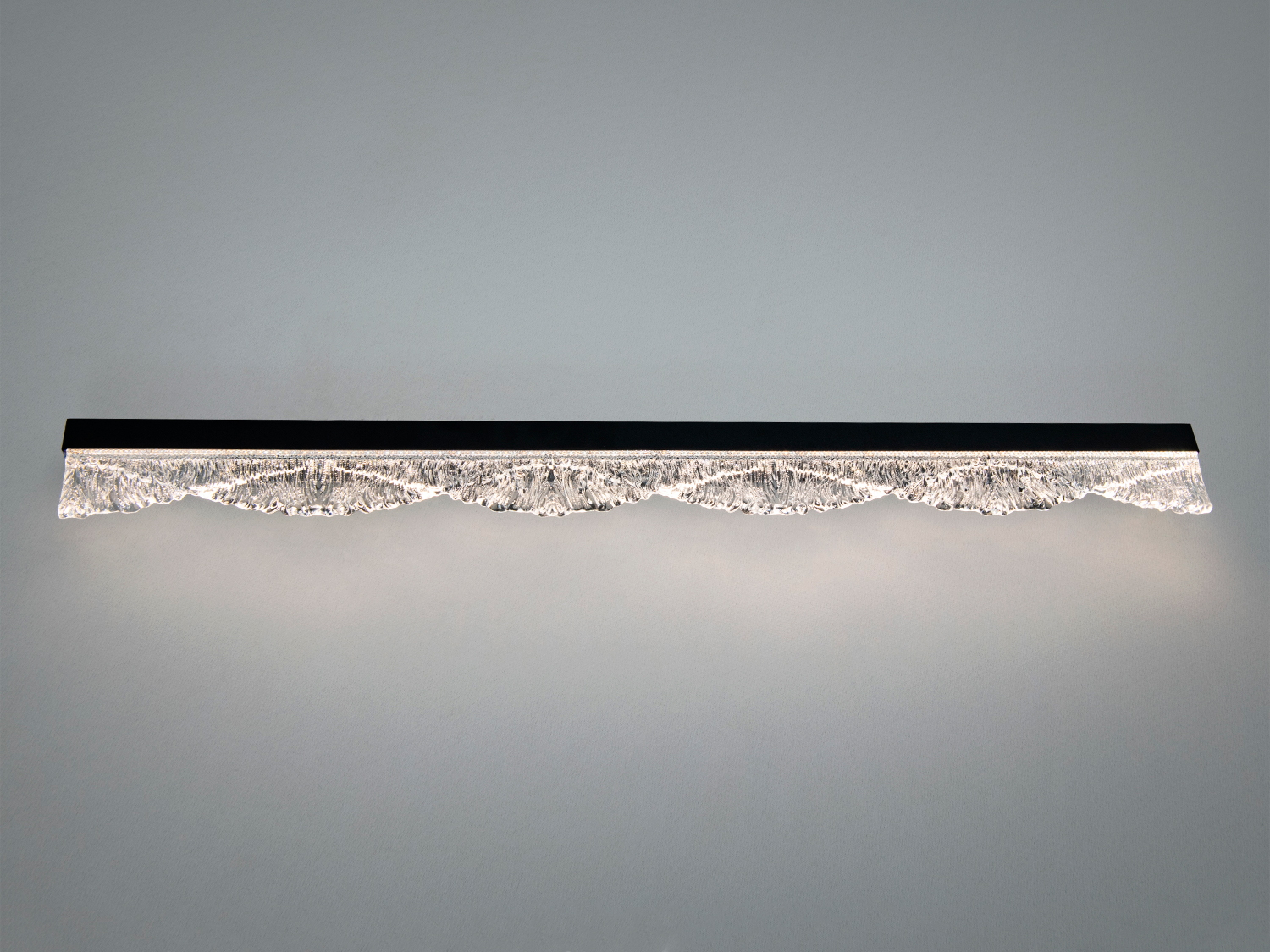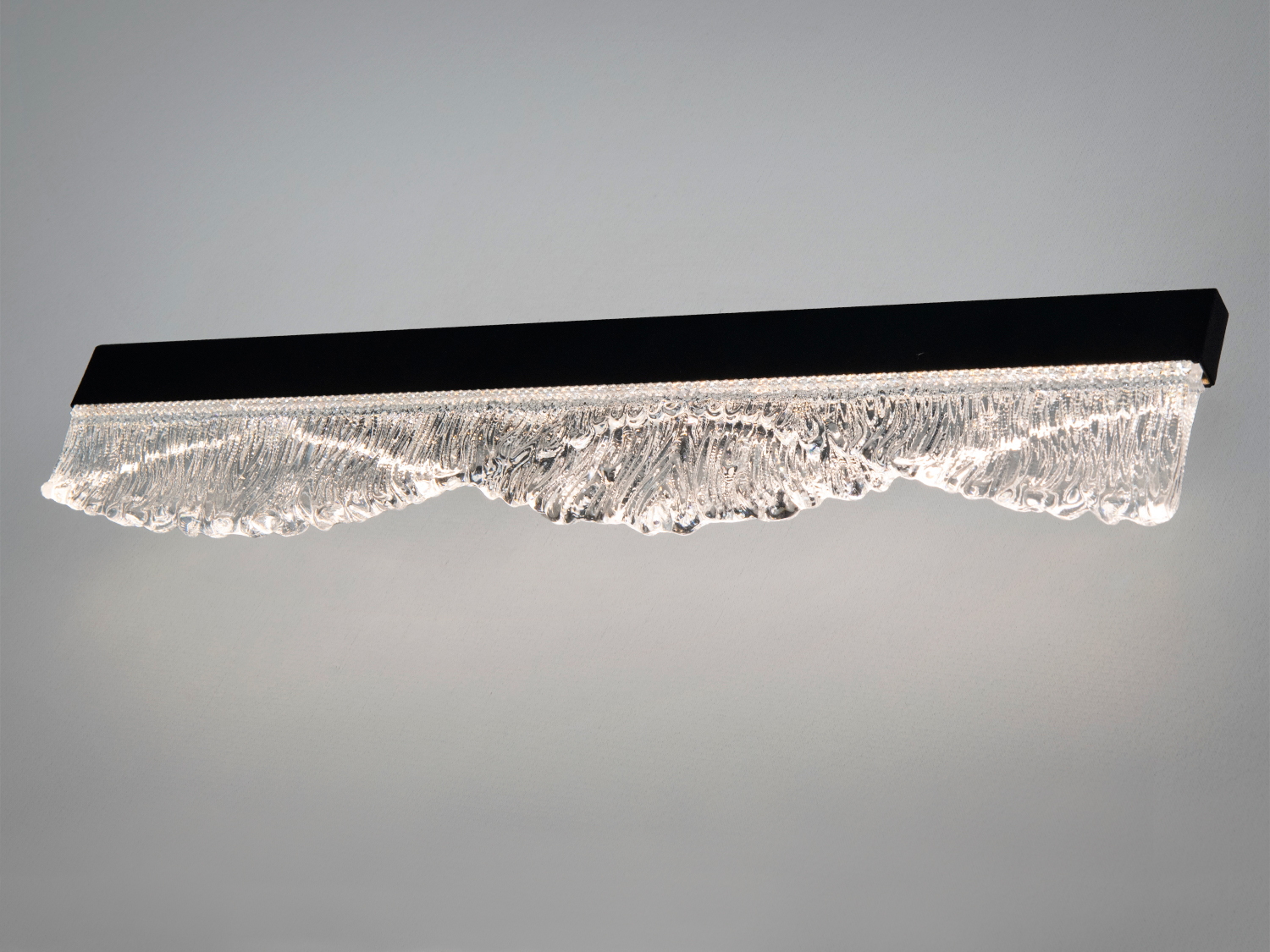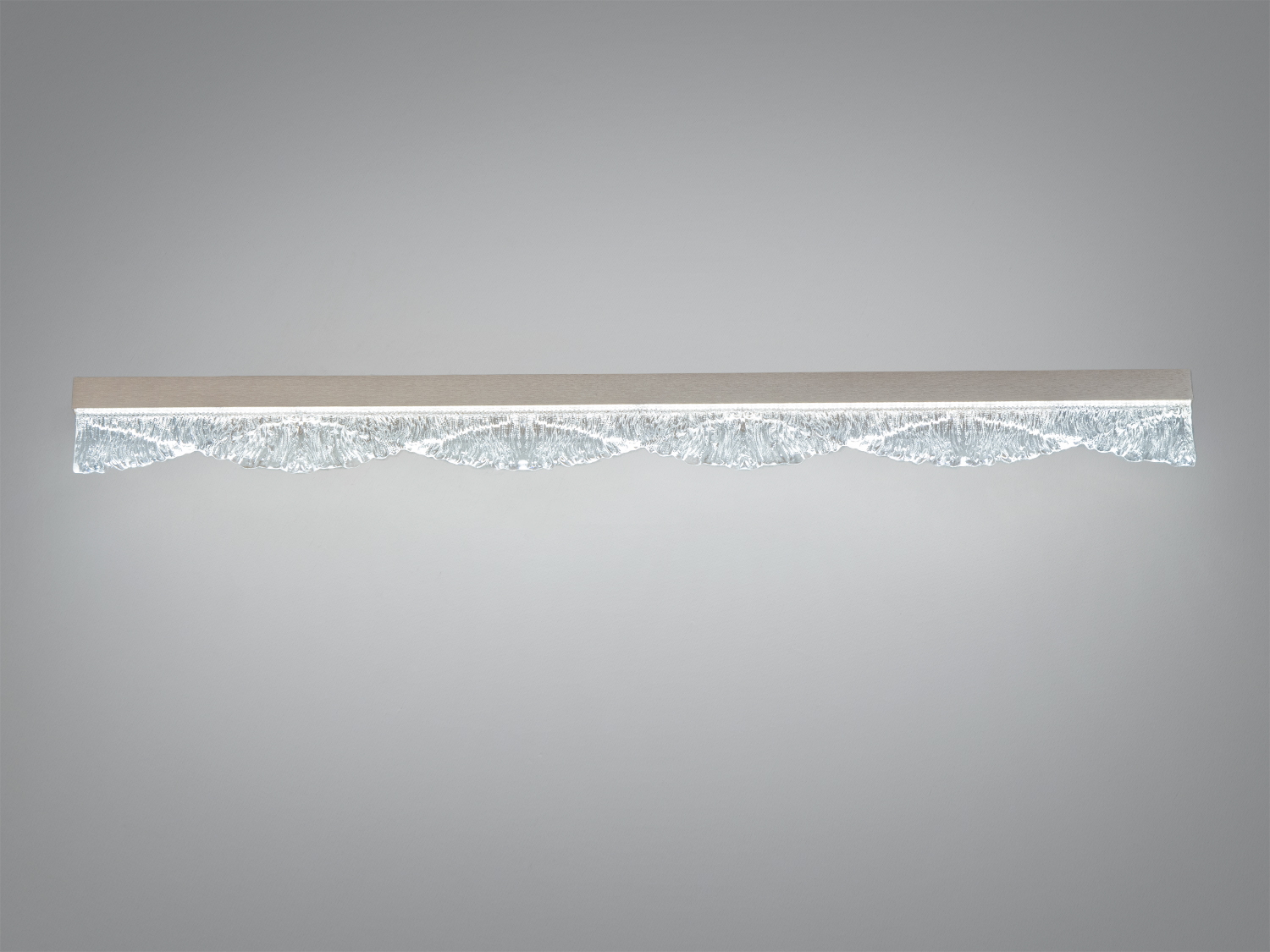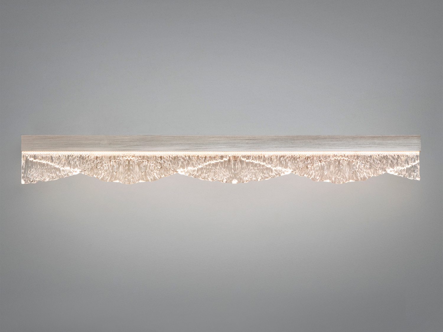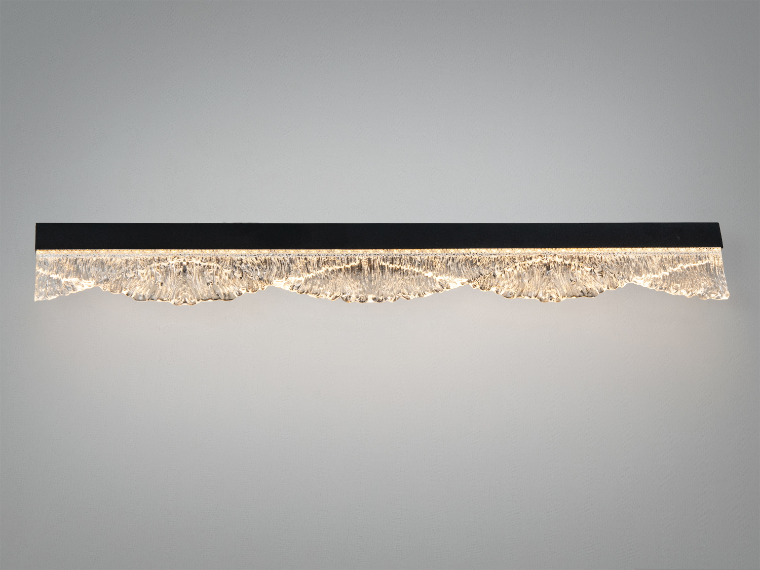 - Прозоре рельєфне скло з хвилястим краєм формує декоративну фактуру й легкі переливи. У ввімкненому стані скло створює м’яку гру світла без зайвих відблисків.