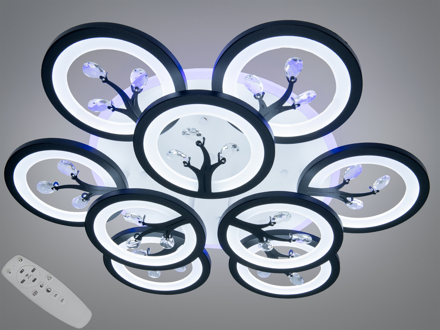 Чорна світлодіодна люстра з пультом, диммером, підсвіткою, 90W