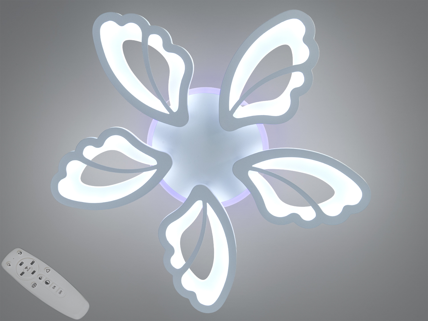 Три пелюсткові модулі формують акуратну композицію з плавними лініями. Біле покриття виглядає стримано і поєднується з більшістю сучасних інтер’єрів. Компактний накладний монтаж зручний для приміщень з невисокими стелями, а розсіювачі забезпечують рівномірний розподіл світла без різких тіней.