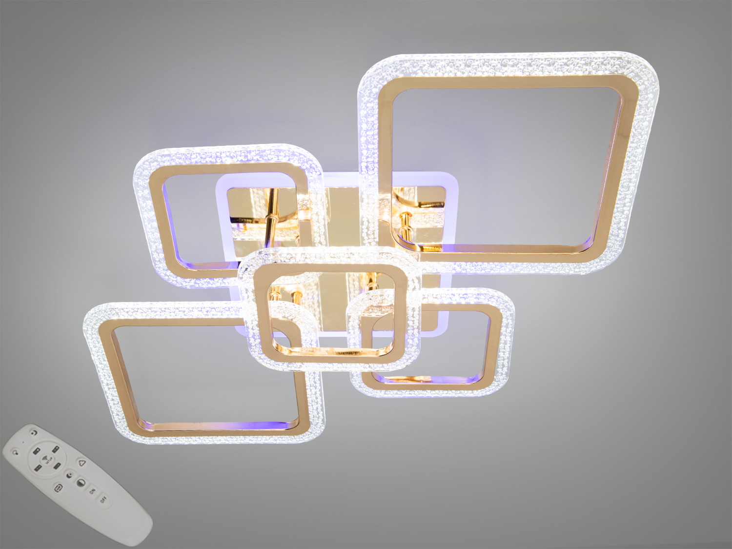 Стельова LED люстра золото димер 85 Вт 5 квадратів