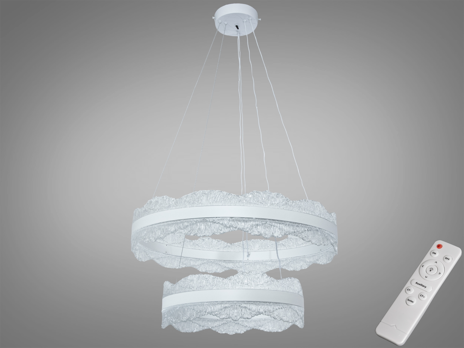 Біла LED люстра з перехрещеними кільцями створює охайний акцент у сучасному інтер’єрі та забезпечує рівномірне освітлення невеликих кімнат. Три акрилові кільця формують виразну композицію, а світловий потік близько 2530 lm зазвичай підходить для приміщень до приблизно 8 м² залежно від висоти стелі та відтінку стін. Керування можливе як пультом, так і звичним настінним вимикачем, що зручно у щоденному користуванні.