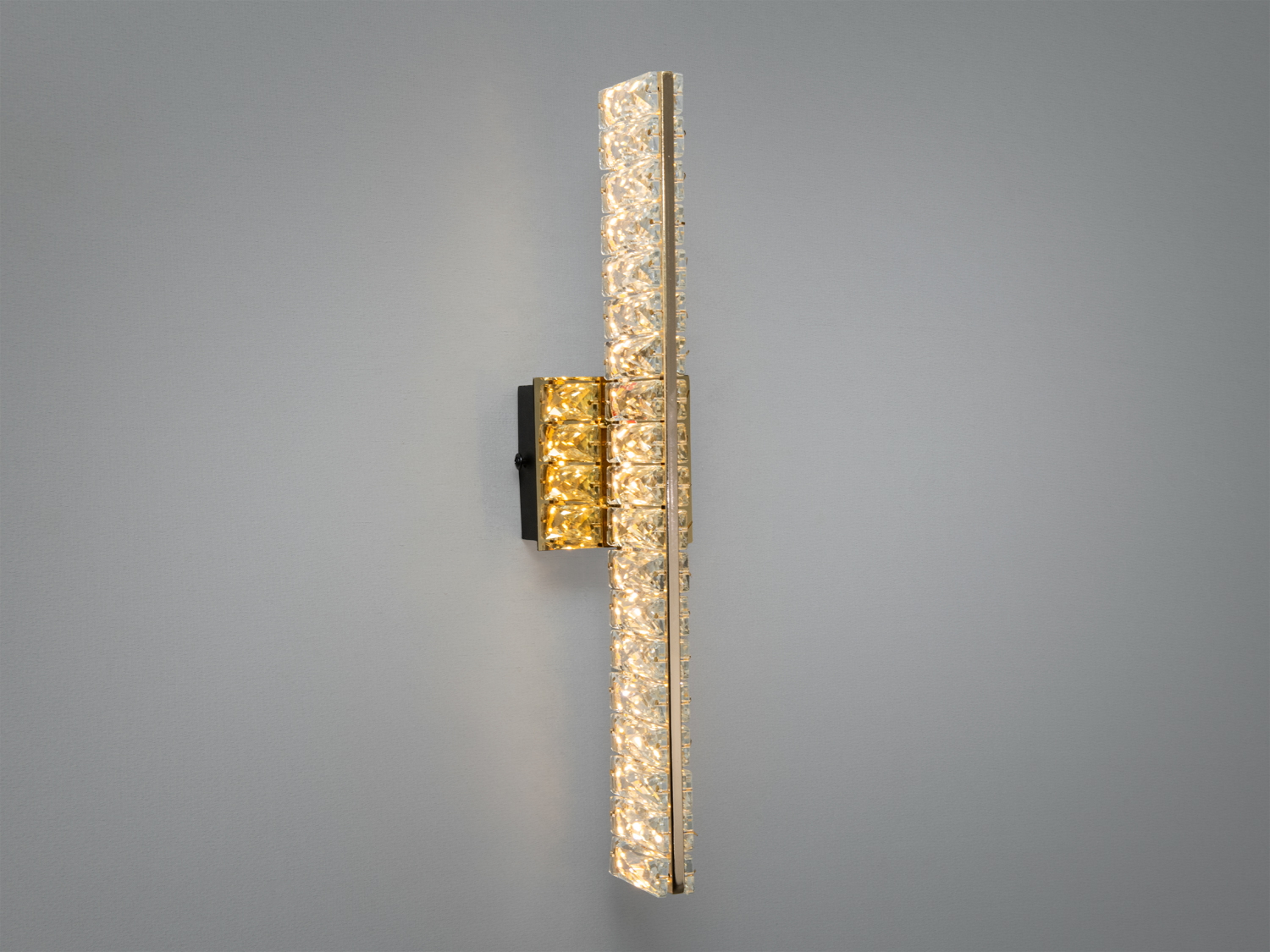 Модель пропонує збалансоване поєднання візуальної акуратності та практичної ефективності. Настінний кришталевий LED-світильник 8 Вт у золоті стане доречним додатковим джерелом світла, яке підтримує атмосферу простору й підкреслює фактуру оздоблення стін.