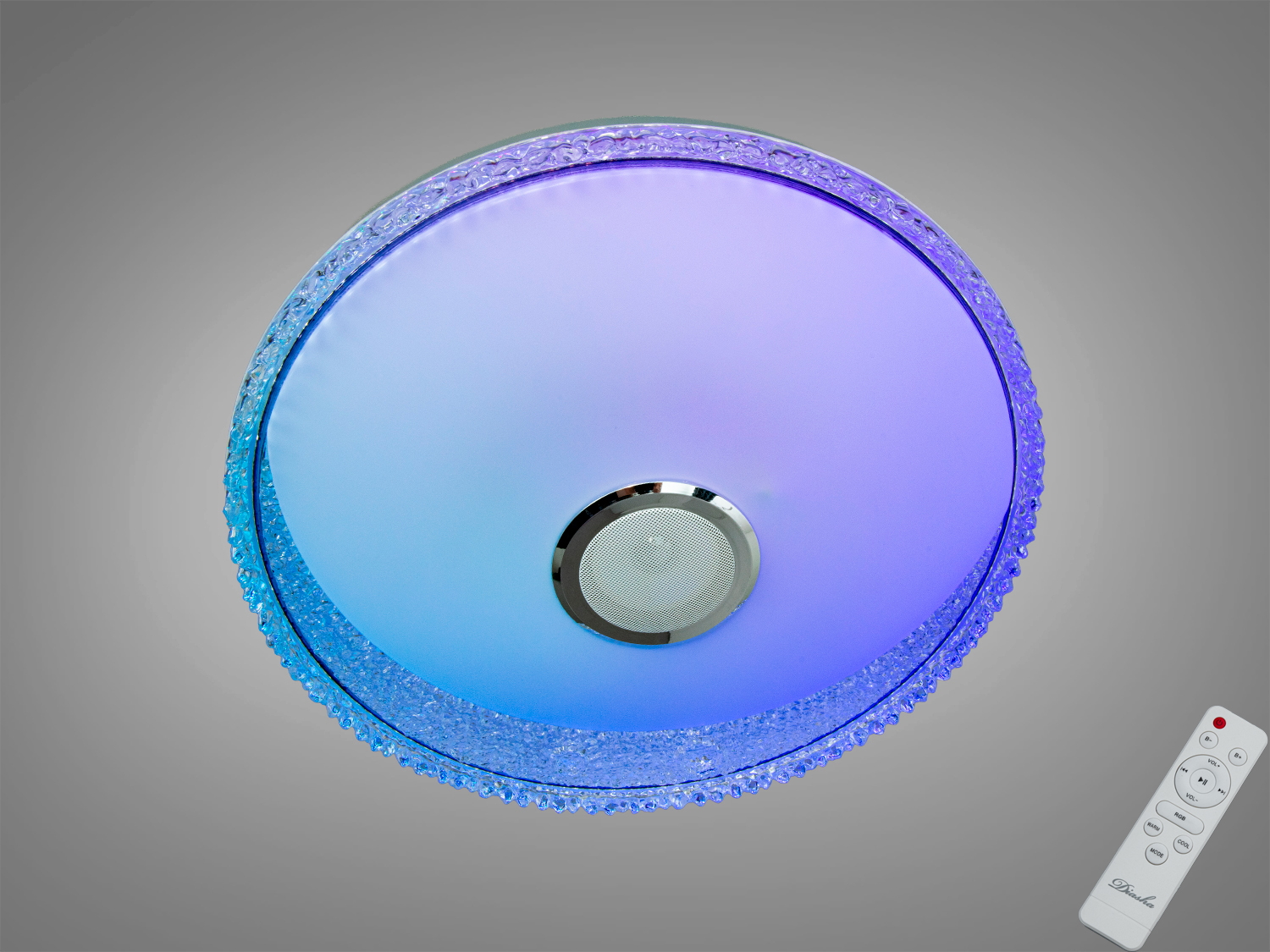 Ця LED стельова люстра білого кольору з RGB поєднує освітлення та відтворення музики у одному корпусі. Вбудована Bluetooth-колонка дає змогу слухати треки зі смартфона, а керування освітленням реалізоване через додаток Smart Life (платформа TUYA) або пульт ДК. Потужність 80 Вт передбачає комфортне загальне освітлення приміщення до приблизно 14 м² з можливістю точно підлаштувати яскравість і температуру білого світла.