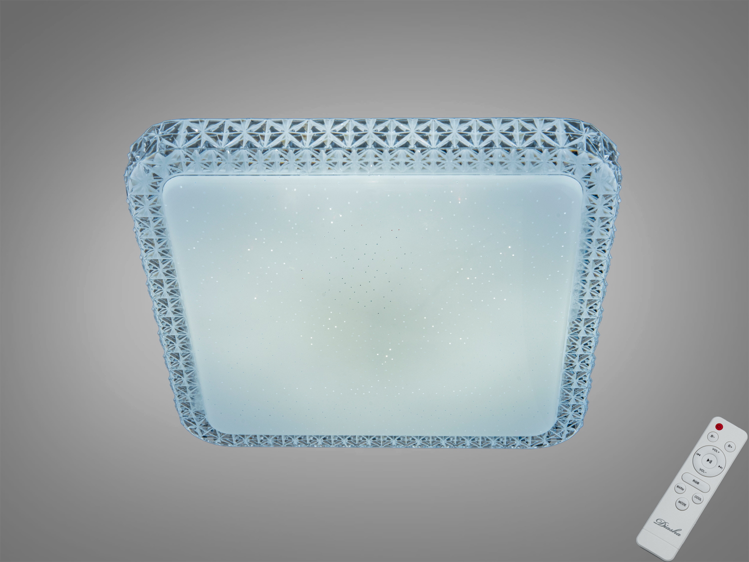 Плаский квадратний корпус у білому кольорі акуратно прилягає до стелі та формує мʼяке розсіяне світло. Режими переключаються з теплого білого для затишної атмосфери до динамічного RGB-підсвічування для вечірок або відпочинку. Кольори та яскравість налаштовуються в один дотик, тож легко обрати сценарій для роботи, сну чи перегляду фільмів.