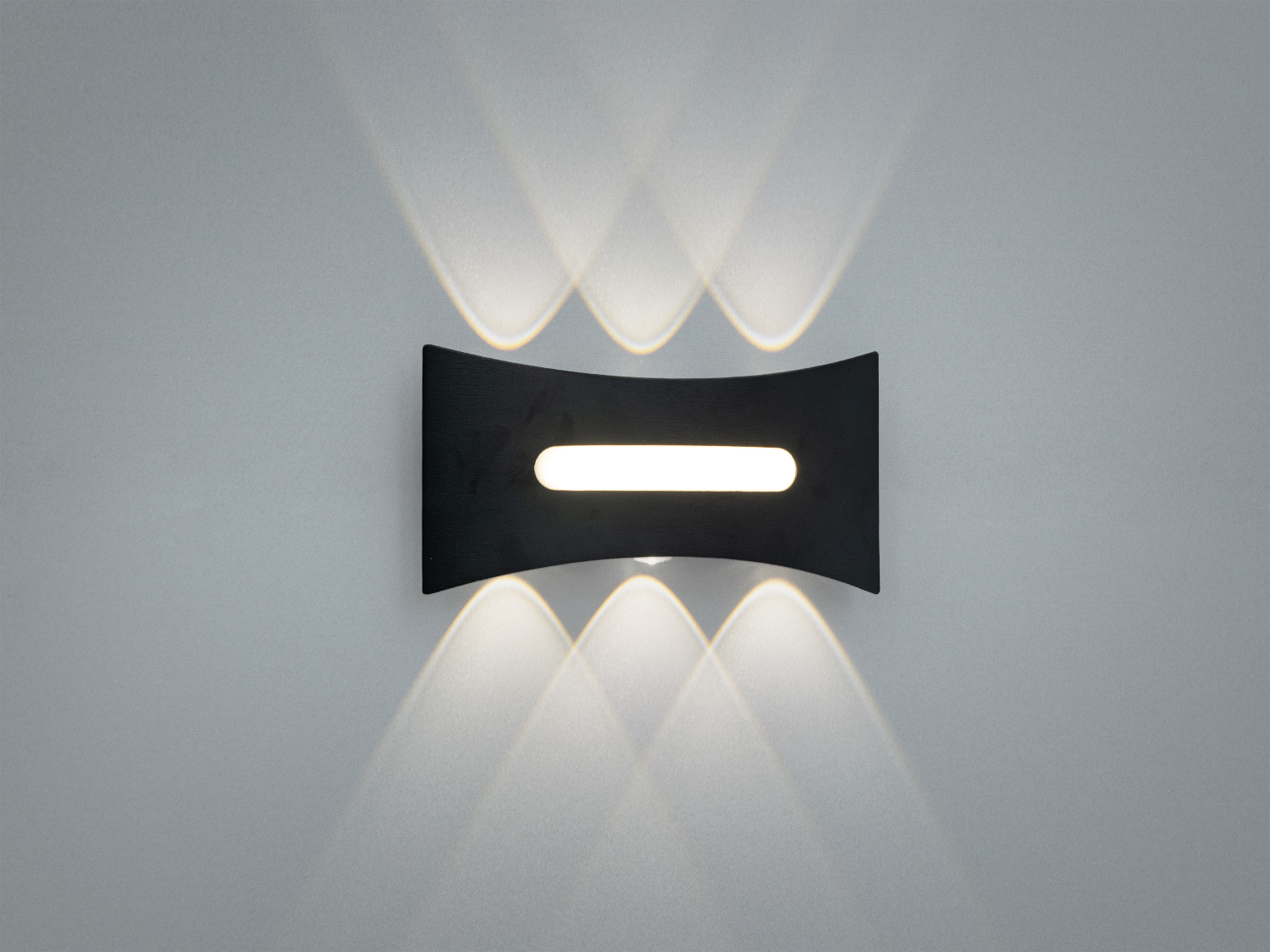 Двонапрямне Up/Down світло формує акуратні світлові конуси. Це доцільно для зонування, акцентування номерів на готельних дверях, маркування сходів, підсвічування декоративних ніших або вертикальних елементів фасаду. Орієнтовна потужність 4 Вт (за маркуванням) вказує на енергоощадну роботу та робить світильник доречним для акцентного освітлення й підсвічування маршрутів руху без засліплення. Один або кілька світильників у лінію можуть вибудовувати ритм уздовж коридору чи фасадної стіни.