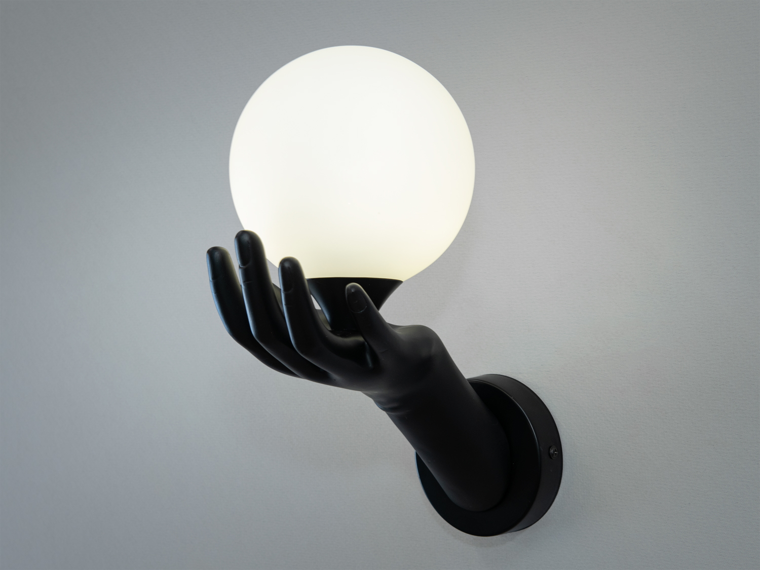 Настінне бра Diasha F3618 — це не просто освітлювальний прилад, а справжній витвір мистецтва, який поєднує скульптурність та функціональність. Його унікальна форма, виконана у вигляді витонченої руки, що тримає кулястий білий плафон, викликає асоціації з теплом і турботою.