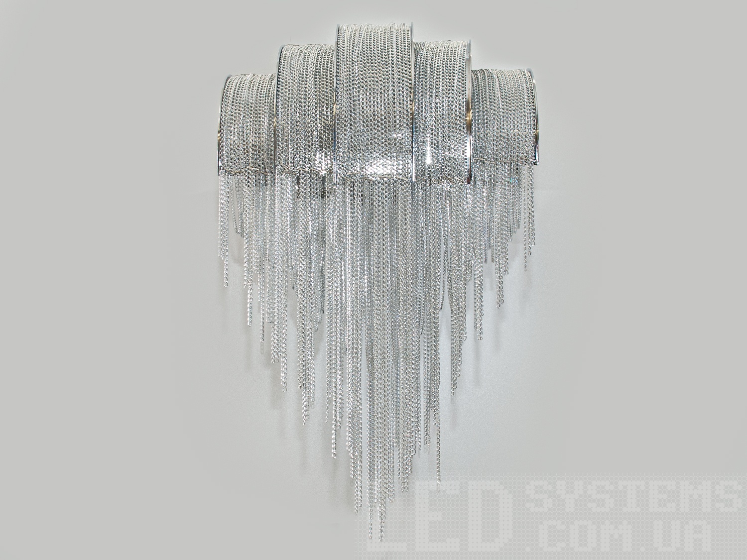 Світильник має дві лампи і оформлений тисячами металевих ланцюжків, які спадають каскадом і м'яко розсіюють світло, створюючи чарівний ефект мільйонів тіней. Легка рухливість цих ланцюжків надає світильнику особливої грації та живості, імітуючи відчуття світла, що проникає крізь листя дерев.