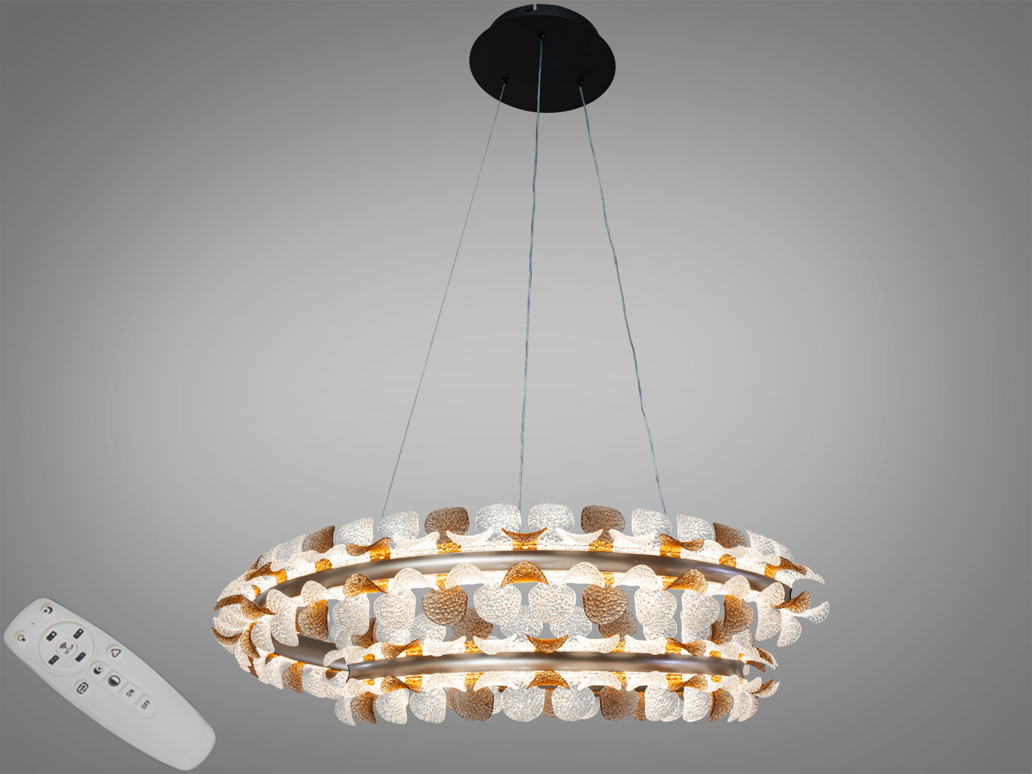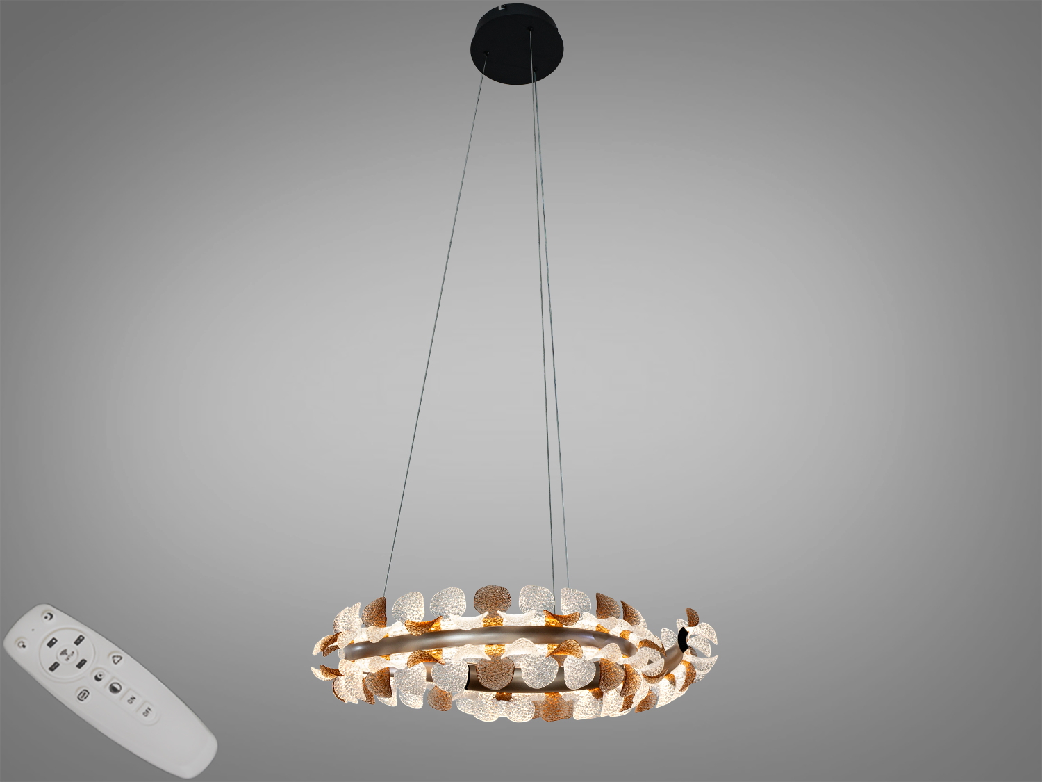 - Керування: пульт ДК та настінний вимикач — зручно перемикати режими й вмикати/вимикати світильник у будь-який момент.
