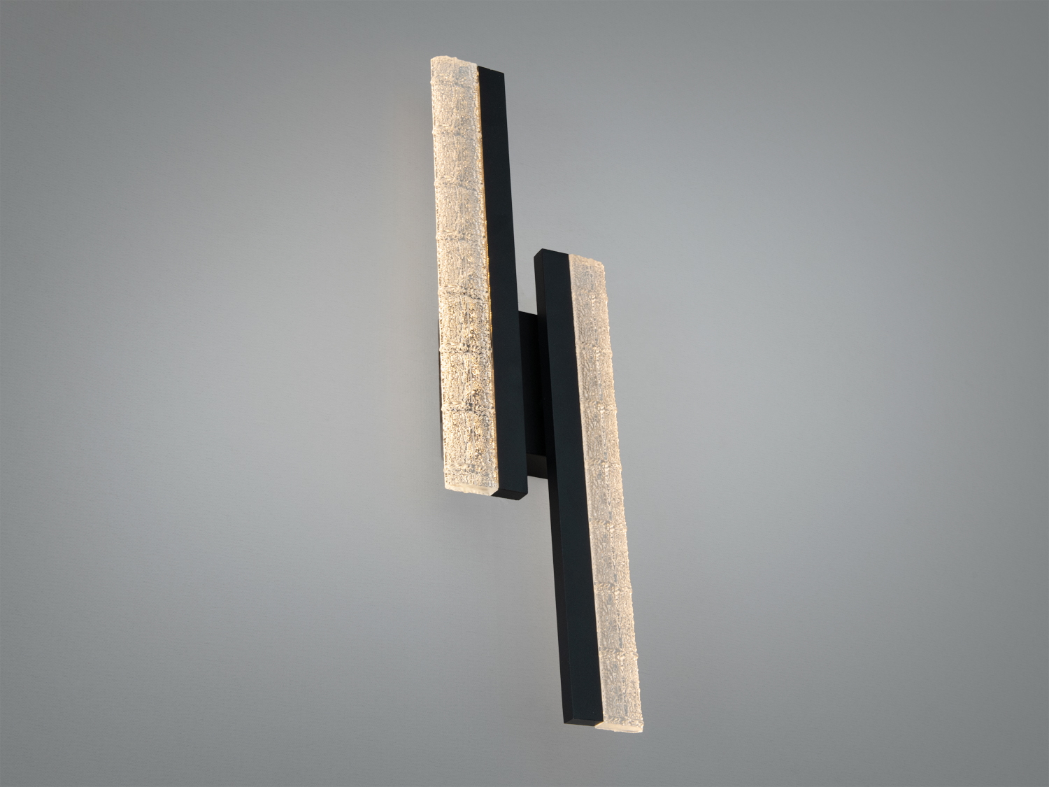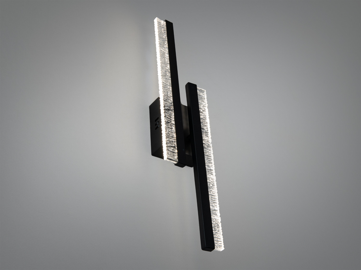 Основні елементи виконані з металу з чорним покриттям і доповнені акриловими лінійними плафонами. Відсутність крихкого скла зменшує ризики у сімейних інтер’єрах. Конструкція призначена для накладного монтажу і під’єднання до побутової мережі; у цій версії пульт не передбачено, тож керування здійснюється стінним вимикачем (режими й сценарії залежать від електросхеми й конкретної модифікації). Догляд зводиться до періодичного видалення пилу м’якою сухою серветкою, сумісною з акрилом.