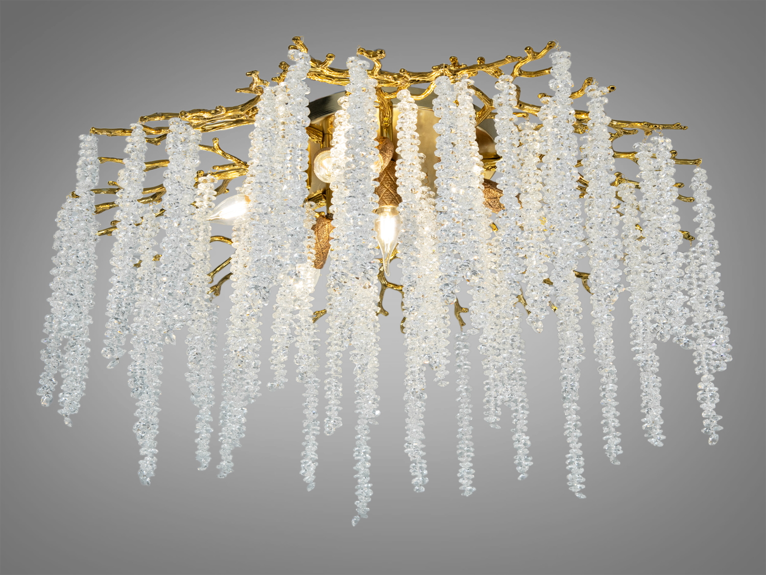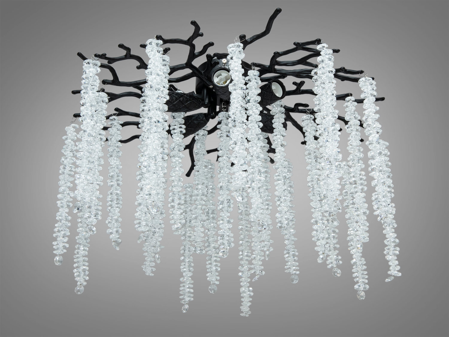 - Виразний «гіллястий» силует і кришталеві підвіски з ефектом «водоспаду».