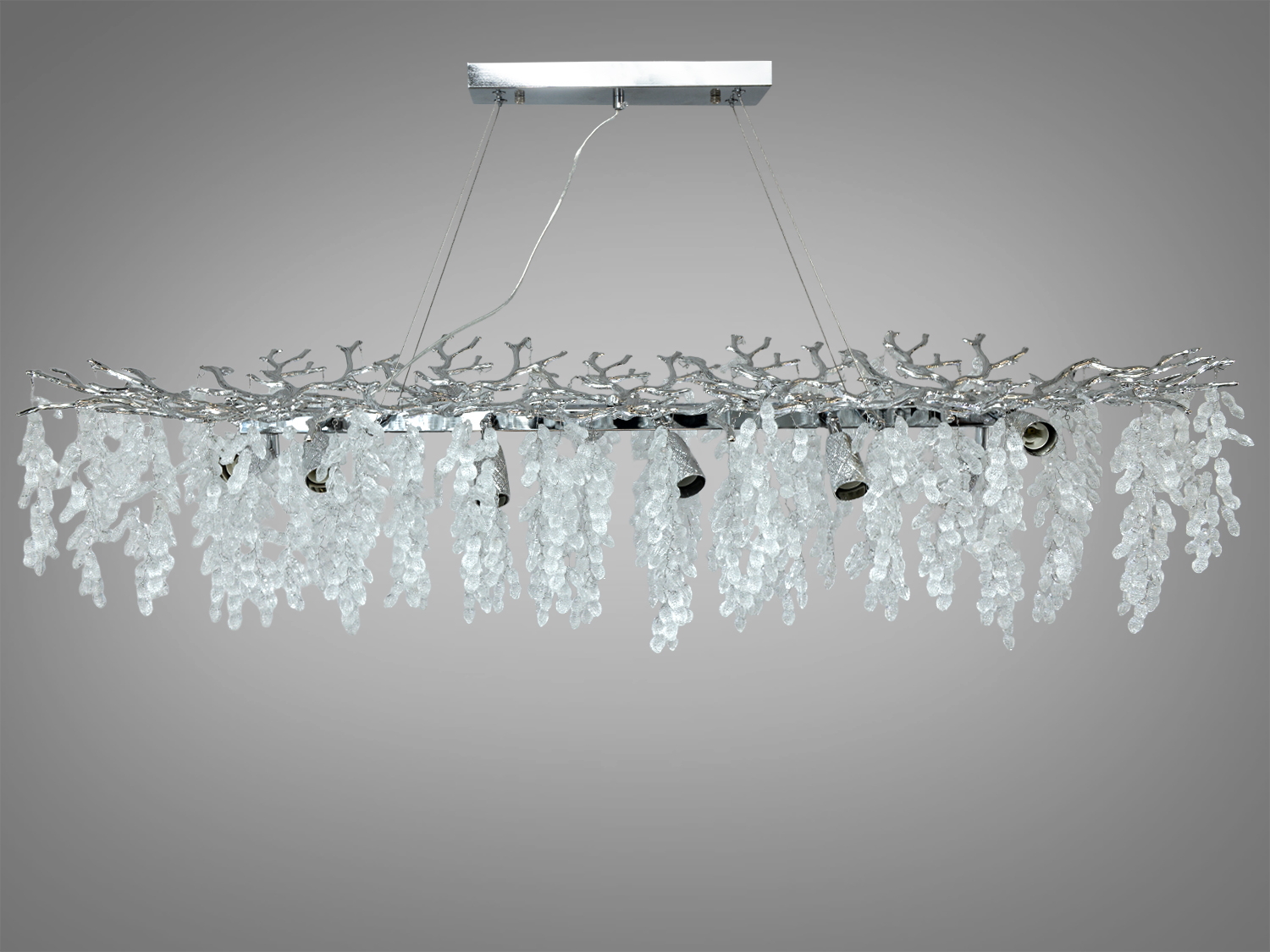 Підвісна кришталева люстра Гліцинія у хромі — декоративне світло з природними формами
