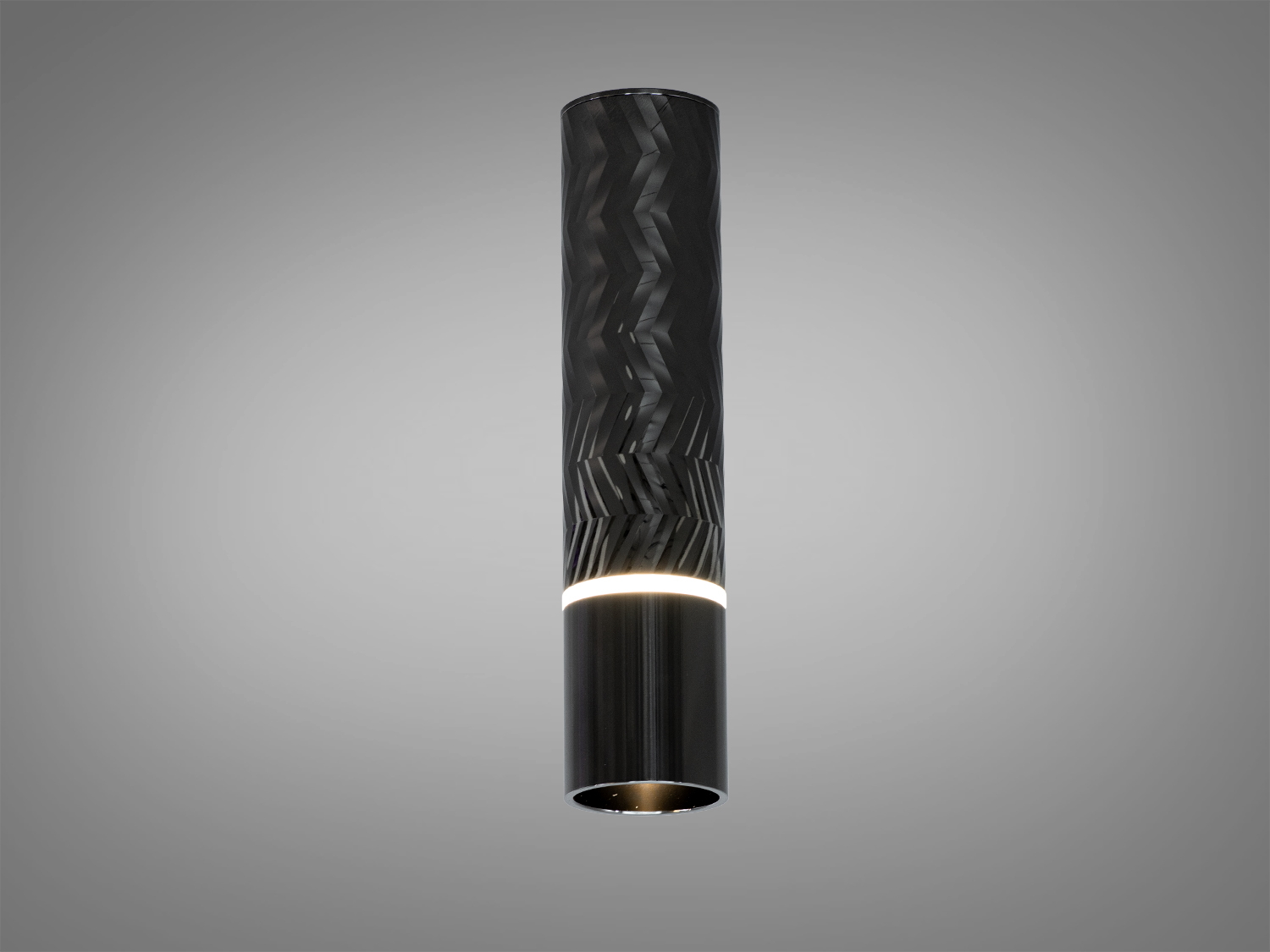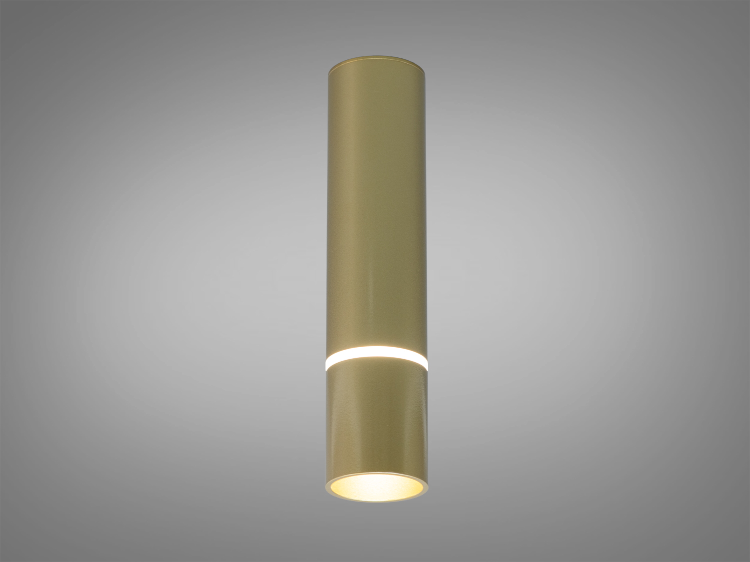 Корпус виконано з металу у вигляді циліндра з рифленою текстурою, закріпленого на квадратній основі. Така геометрія часто поєднується з сучасною архітектурою, а золотий колір додає теплих відтінків каменю, штукатурці чи дерев’яному планкену. Рифлена поверхня візуально «збирає» світло, завдяки чому світлові плями на стіні виглядають більш рельєфно.