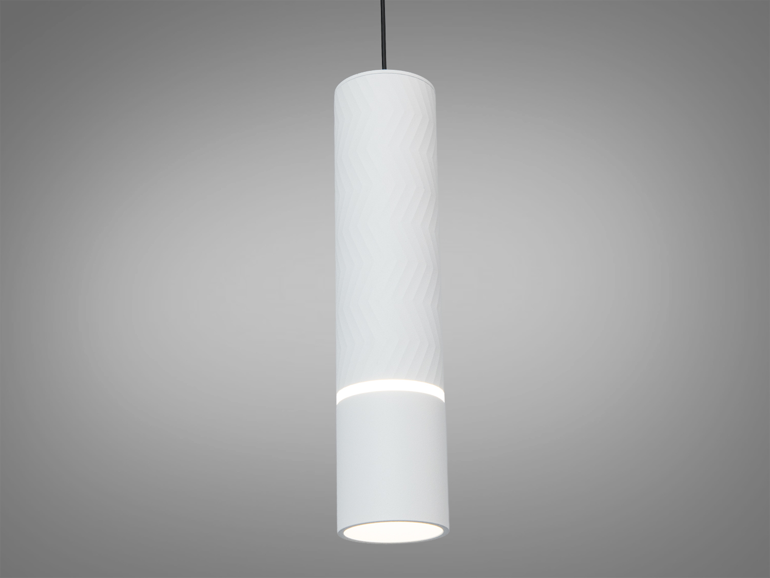 Корпус має лаконічну циліндричну форму з чорного металу. Така геометрія сприяє спрямованому світловому потоку, а матове чорне покриття виглядає стримано та добре поєднується з різними фактурами — деревом, бетоном, каменем. Акуратний підвіс на тонкому шнурі підкреслює вертикаль і дозволяє компонувати кілька однакових світильників у лінію або групою.