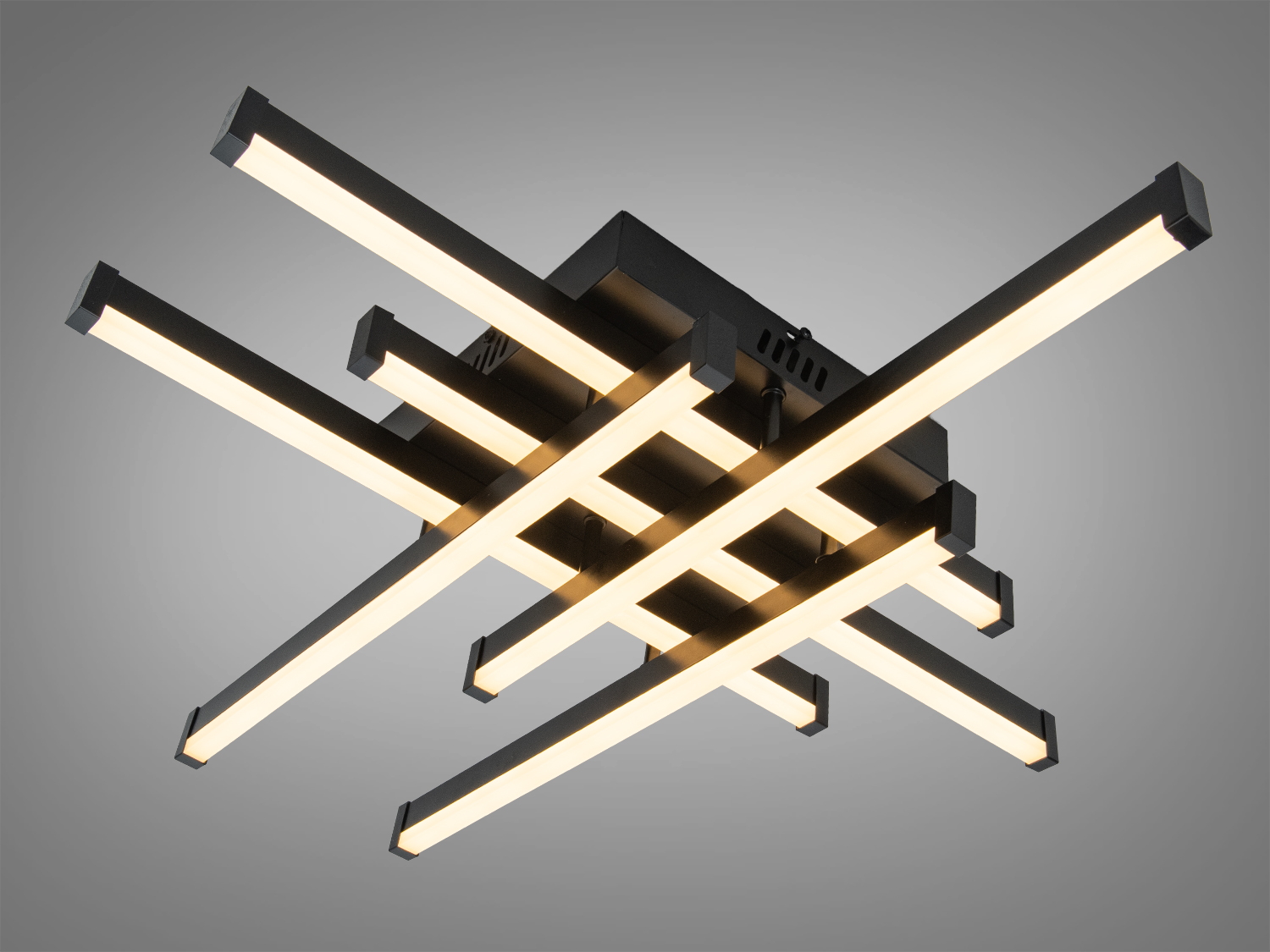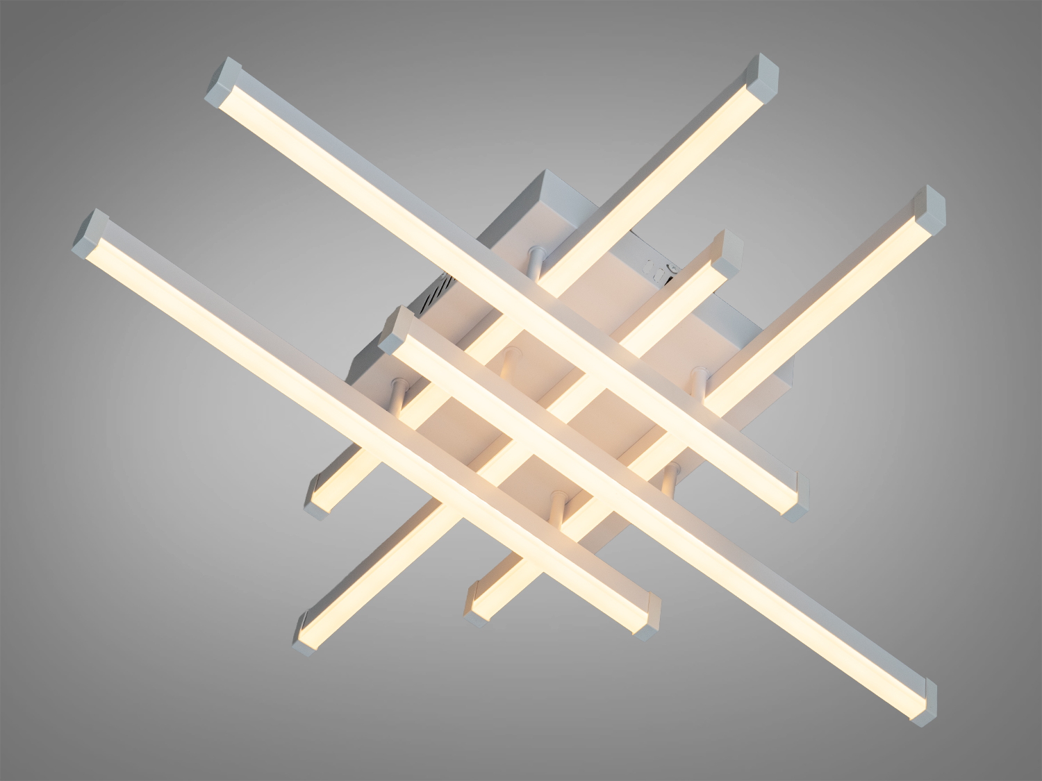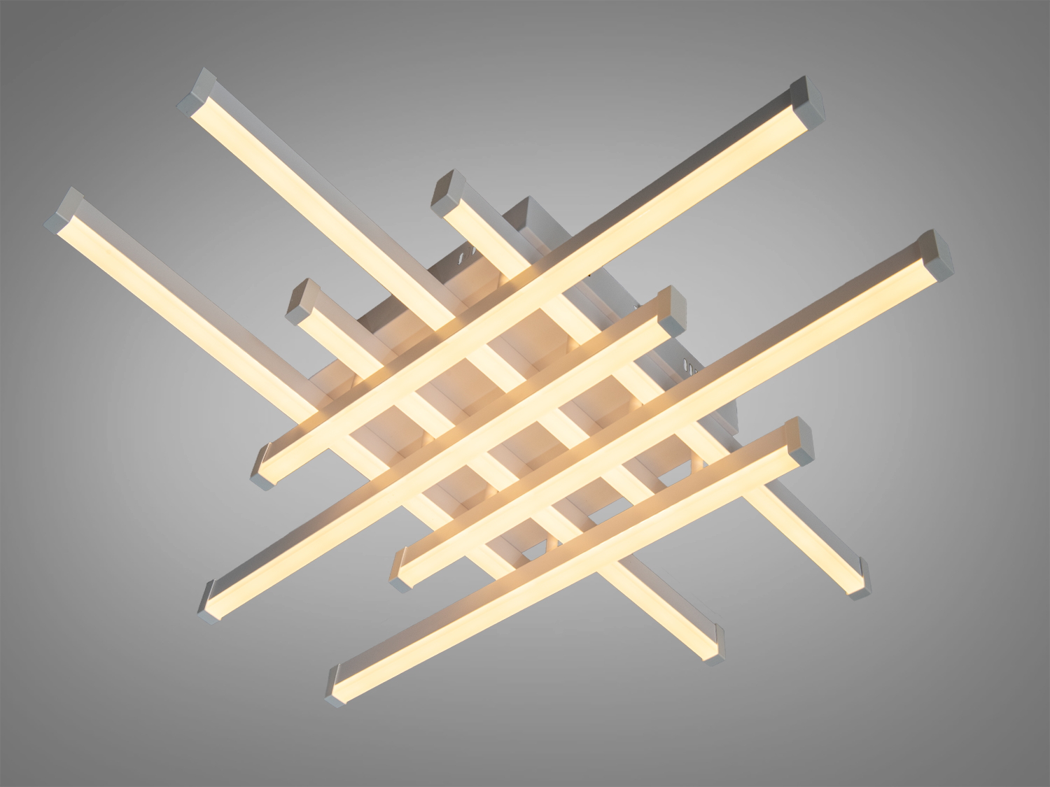 Конструкція побудована на трьох перехресних LED-модулях, що утворюють графічний “X”-силует. Білий матовий корпус візуально полегшує світильник і поєднується з різними палетами стелі та стін. Акрилові розсіювачі пом’якшують світловий потік та допомагають знизити різкі тіні, тож освітлення сприймається комфортно для очей. Низький профіль підходить для приміщень із невисокими стелями, де важлива економія простору.