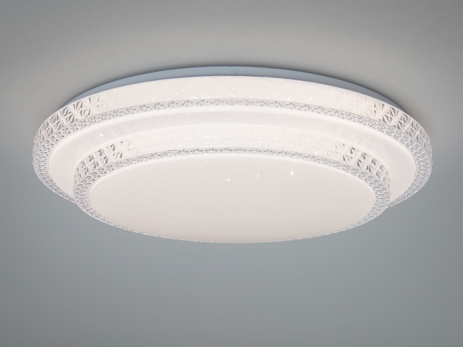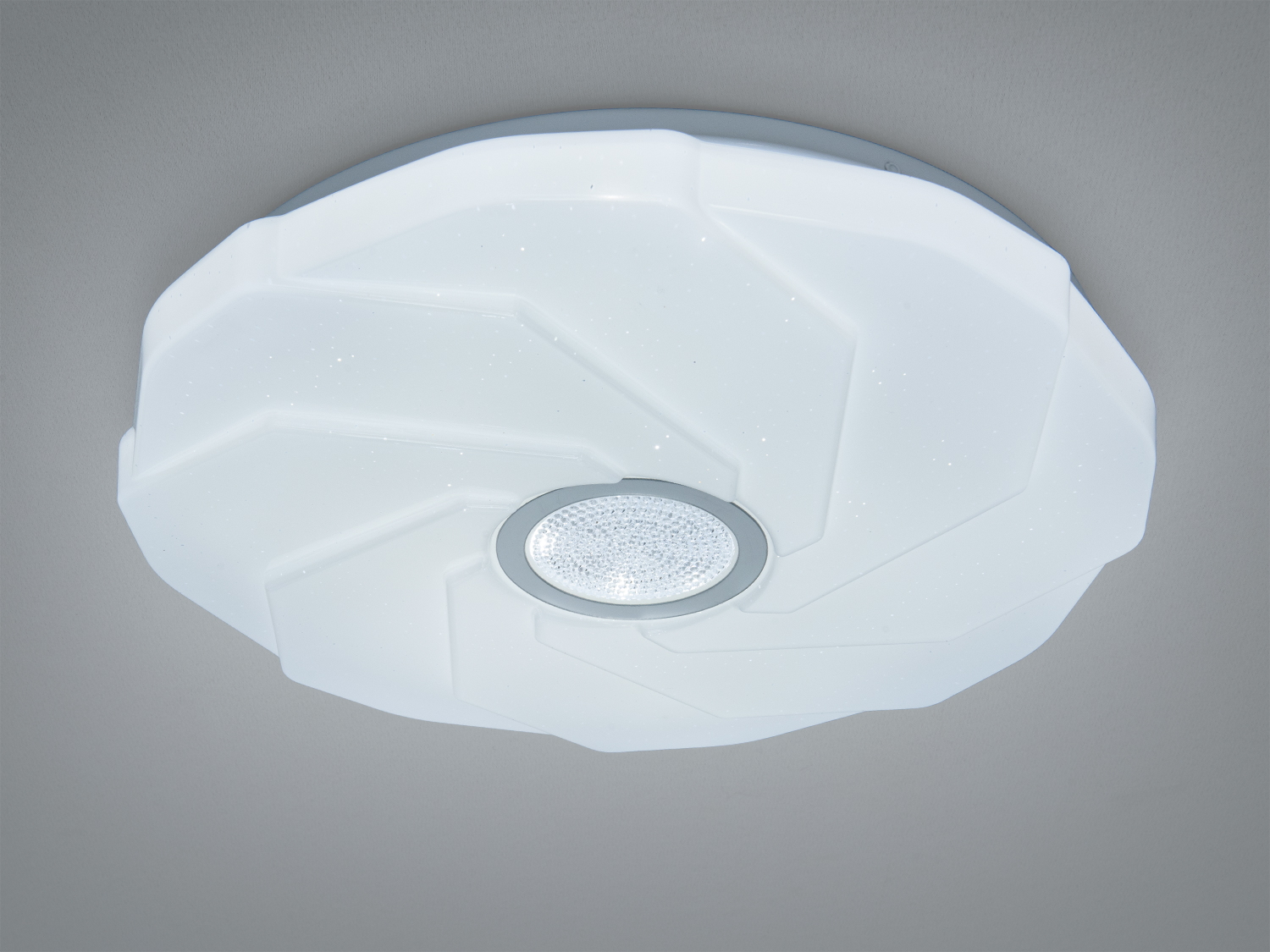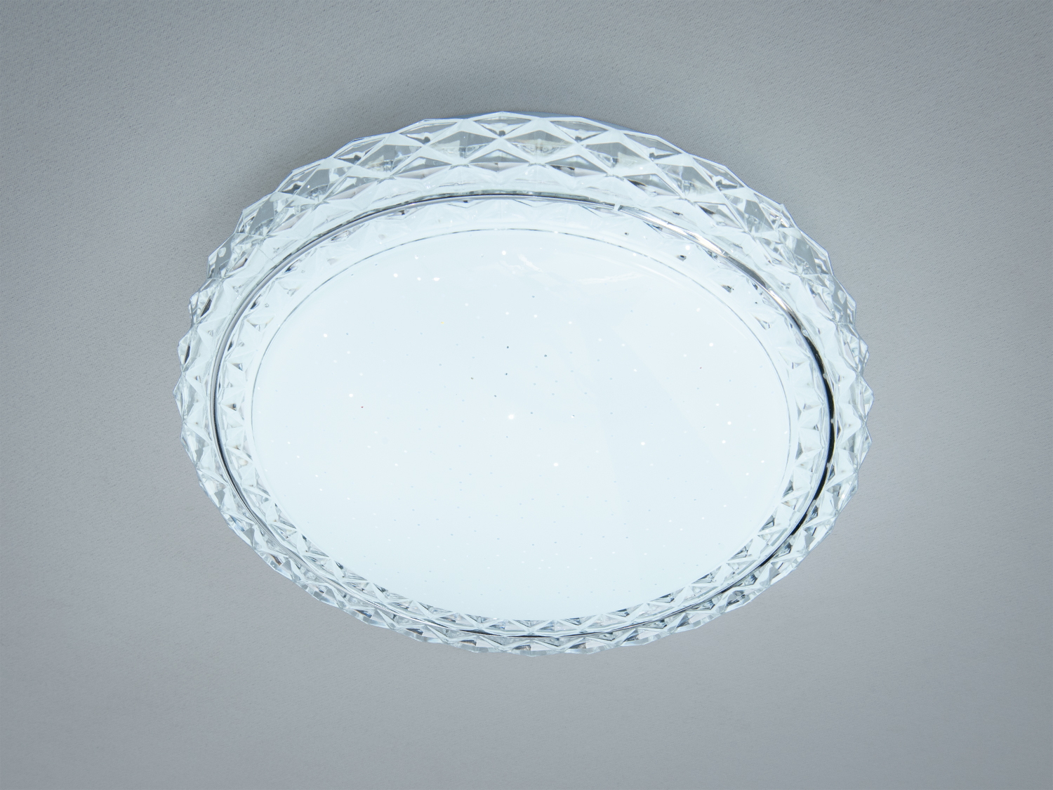 Вбудовані світлодіоди сумарною потужністю 34 Вт забезпечують приємне загальне освітлення для приміщень площею до 6 м² (передпокій, невеликий кабінет або компактна спальня). Світло розподіляється по колу, тож освітлення залишається стабільним у центрі і по краях. Модель працює від стандартної мережі 220–240 В, не має пульта та передбачає керування настінним вимикачем.