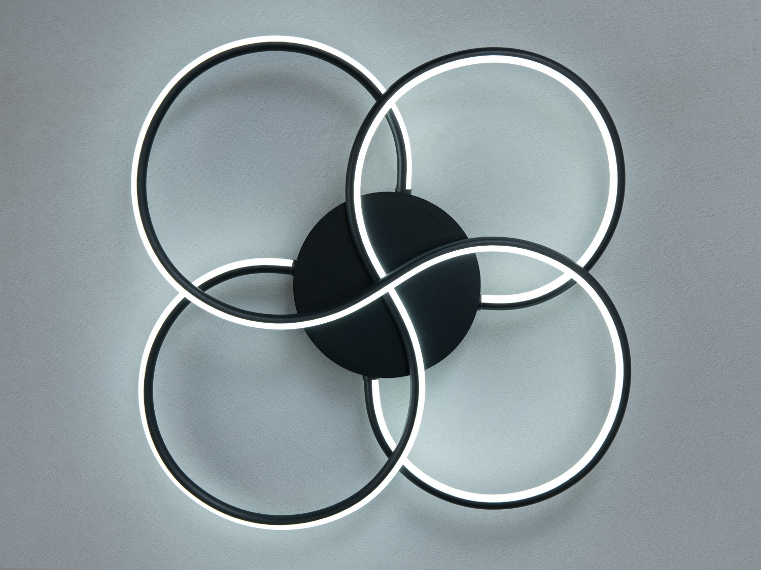 Накладний тип монтажу дозволяє встановлювати світильник на стандартні стельові основи. Композиція з переплетених смуг візуально «оживляє» площину стелі, але не перевантажує простір і може пасувати навіть у кімнатах з невисокими стелями.