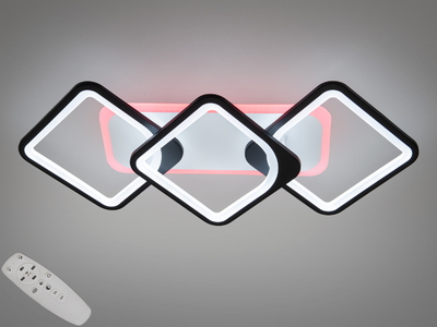 Світлодіодна стельова люстра Серія 8022 чорна з пультом димером і кольоровою підсвіткою 55W