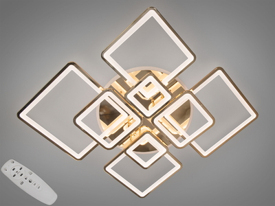 Люстра стельова LED Серія 8060 золото 225W пульт диммер підсвітка квадрати
