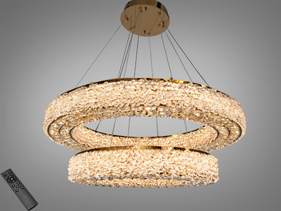 Підвісна люстра Diasha золото 54Вт пульт 2 кільця