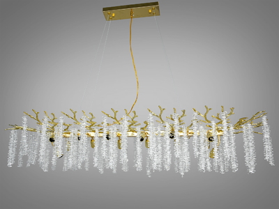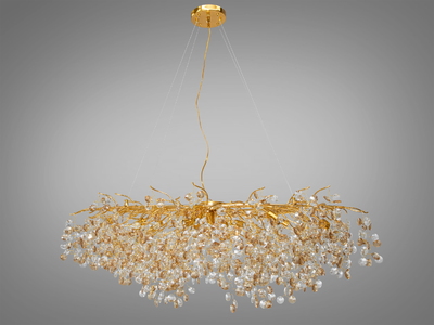 Люстра підвісна кришталева Diasha Серія Гліцинія золото 12 ламп E14 витягнута форма на тросах