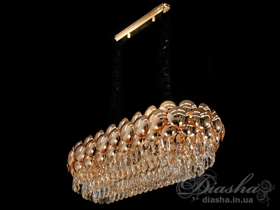 Ефектна кришталева підвісна люстра для столу овальної форми, 8 ламп