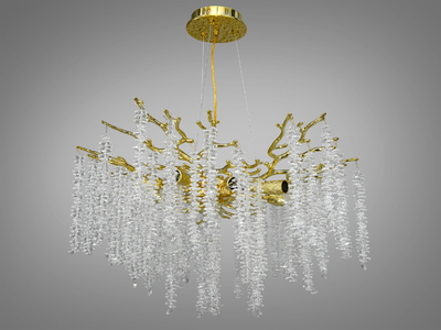 Кришталева люстра B9085 золото багатоярусні підвіски