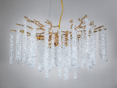Підвісна кришталева люстра Diasha серія Глициния золото витягнута форма 10 ламп