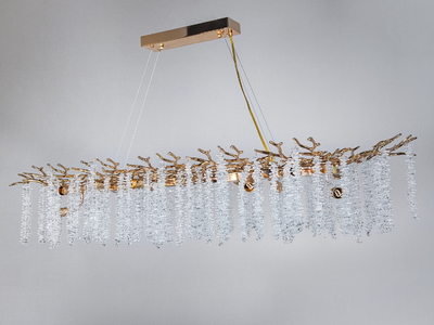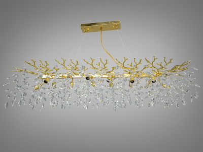 Дизайнерська кришталева золота люстра підвіс витягнутої форми, 14 ламп