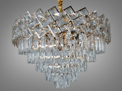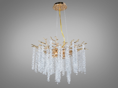 Кришталева люстра Diasha золото багатоярусні підвіски