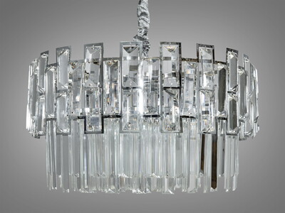 Неповторна підвісна люстра зі скляними елементами, 11 ламп, хром