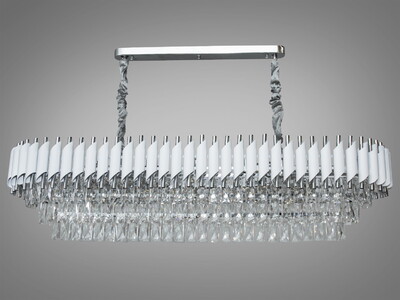 Люстра кришталева серія 1013 білий хром овальна на 16 ламп підвісна