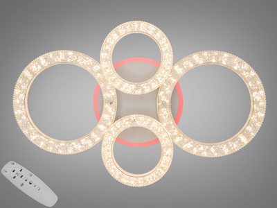 Стельова LED люстра 4+4 кільця хром 125Вт пульт