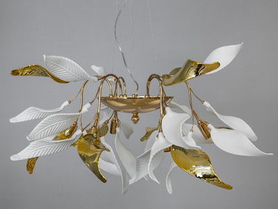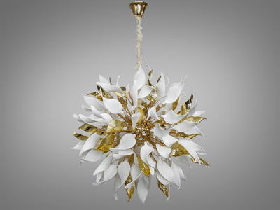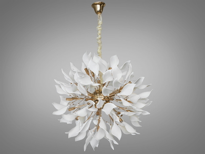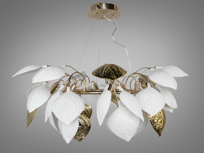 є відео оглядЛюстра стельова керамічні пелюстки золото 10 ламп