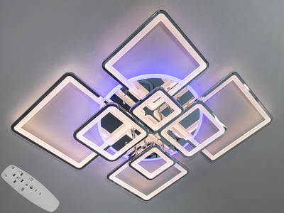 Стельова LED люстра Серія 8060 хром 225 Вт пульт диммер підсвітка регулювання кольору